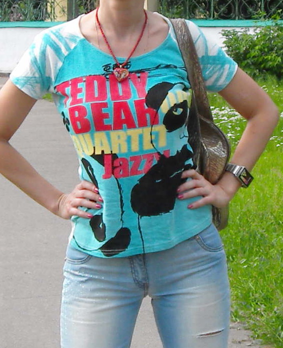 Невладение терминами. Среди ювелирных производителей "краснухой" называется это http://www.kupizoloto.ru/cat/p/catalog2/434/?397=1 и это http://www.kupizoloto.ru/cat/p/catalog2/434/?399=1 и.т.п. Подобные вещи хороши только тем что их принимают в ломбард. Эстетическая функция у них отсутствует ввиду жесткой бюджетности целевого покупателя. Действительно, могли бы на http://maya-honey.ru/catalog/ready.htm продаваться. Китайцам бы сделали конкуренцию. А мне все равно где. Я случайно увидела тут девочка плетет, мне как раз нужно было такой длины и в такой гамме, причем без затей сельской простоты. А сердце с часами покорило меня трогательной прямотой замысла. Я его вообще-то с этим топом /Нети, это топ, не помню откуда ей богу позапрошлогодний если я не ошибаюсь. / не одеваю, они разностильные я эти фото сделала для авторши, хотела в теме вставить, но тему потеряла. Сердце я ношу со смешными футболками. Типа вот ниже. Я на маехане лазила, но там сквозь цыганщину не пробиться и деньги неадекватные. Мои любимые китайцы из полудрагоценных дешевле ваяют.