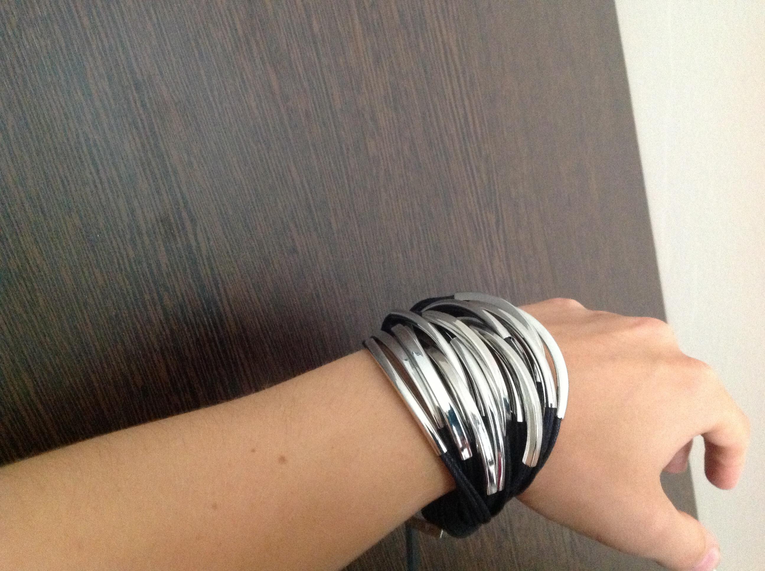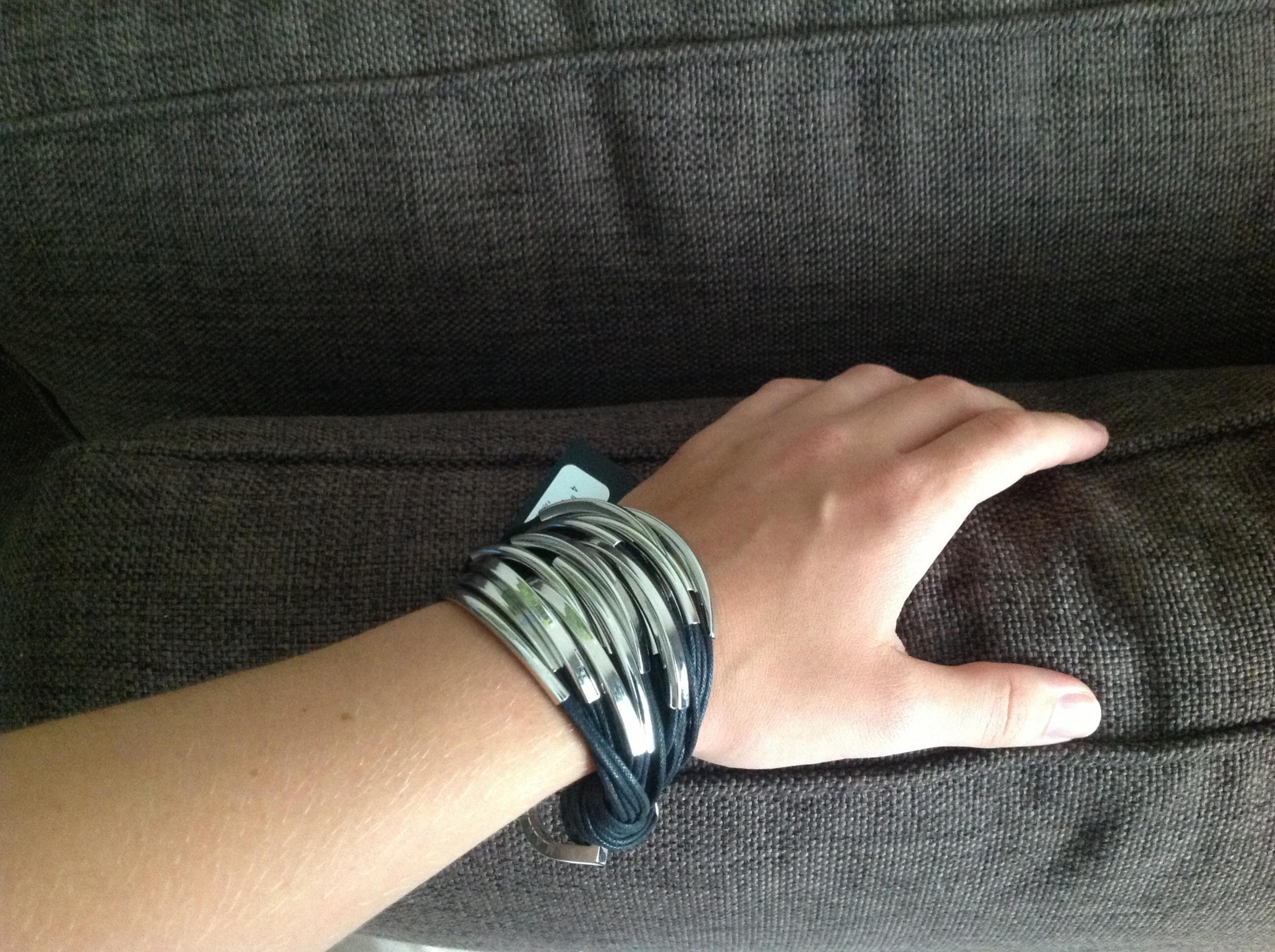 С ценниками на руке. Серый такой же, только серый)) С голубыми камнями, какие там топазы, стразы или как их там. Но смотрится свежо прям