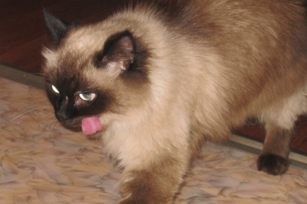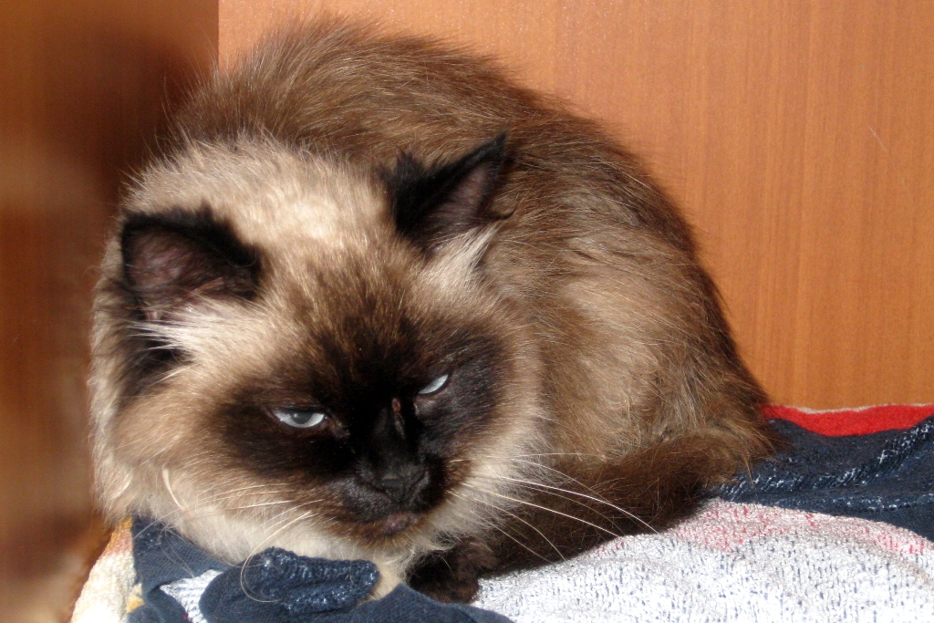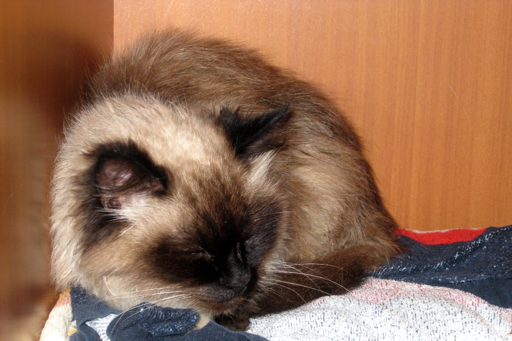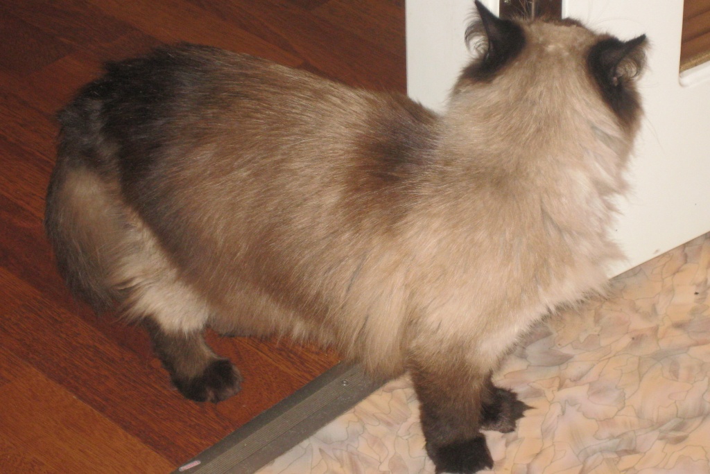 шерсти много, к ногам (попе) поменьше, шерсть водоотталкивающая, лапки средней длины (у мамы у сиамца сильно длинее ноги) с пучками шерсти между пальцами. Кошка стала вести себя так, как будто всегда у нас и жила))) К лотку приучена, послушная - на кровать раз сказали что нельзя прягать и больше не делает попыток. Спит на полке в шкафу или у детей, или в зале на достаточной высоте... Видимо кошка гнездовая))) Или был домик и ей его не хватает... У кошки губа нижняя увиличена, вроде не хватает витаминов... Даже не знаю дожидаться ли, что найдутся хозяева или срочно везти в ветеринарку (не хочется морально травмировать кошку - вытаскивать на улицу, запихивать в машину и везти куда-то)