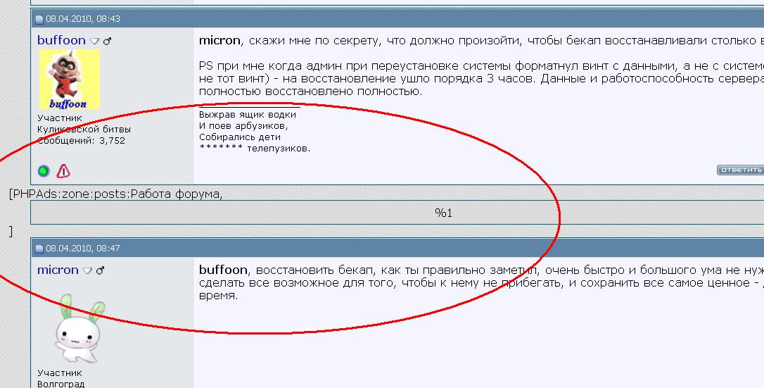 Ну что вы накинулись на микрона? Ну отъехал форум, ничего страшного. при обновлениях всякое бывает. Бэкап делается по хорошему раз в сутки, но по опыту редко у какаго хотера так. Артефактов на форуме море, думаю что все со временем уберётся.