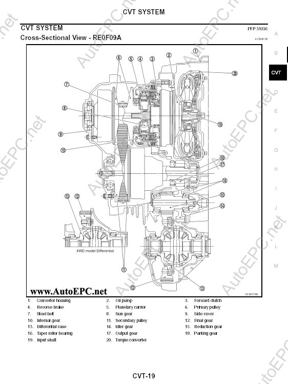 на NISSAN X-TRAIL устанавливается вариатор фирмы JATCO, модель JF011FE. Кроме этого, эта модель вариатора применяется на следующих автомобилях: Outlander XL, MITSUBISHI DELICA D:5, DAIMLERCHRYSLER DODGE CALIBER, JEEP COMPASS, JEEP PATRIOT. Это фактически гидротрансформатор + вариатор "В отличие от вариаторов фирмы Honda, JATCO использует гидротрансформатор. Его основная цель - обеспечить плавное ускорение автомобиля из положения "стоп" путем полного гидравлического отключения трансмиссии от двигателя. Гидротрансформатор работает на небольших скоростях, ориентировочно до 19 км/час." Так что его устройство еще сложнее классической АКПП, а трудоемкость ремонта выше.