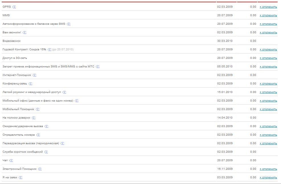 У меня тоже странная ситуация получилась: Есть сим карта МТС, использую ее периодически для звонков внутри сети, так вот сим карта была в блокировке, баланс был -0.65 руб. около двух месяцев, затем я его пополнил до 30 руб. чтобы позвонить, позвонил, осталось 24 руб., и через неделю захожу в интернет-помощник ,вижу, что на счету вместо 24 рублей, 7.94 руб. Логичный вопрос сразу, куда деньги-то утекли, если сим карта не включалась больше. Заказал детализацию, в ней указывается, что у меня подключена услуга Чат-пакет, с абонентской платой 1.5 руб./сут., при чем я ее не подключал. Что самое интересное, ее нет в списке подключенных услуг в интернет-помощнике. Замечательная работа МТС, подключаем, что хотим.
