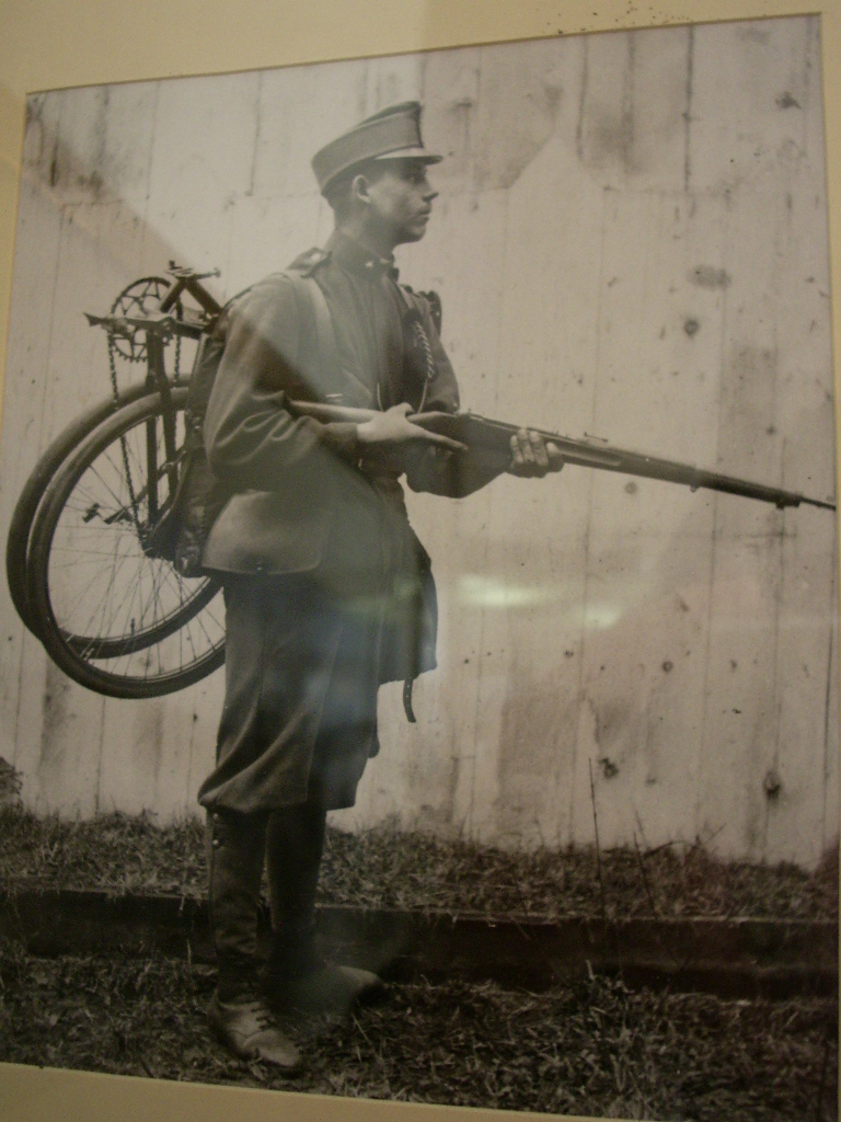 Отличная задумка. В этом месте я согласен. Но зачем было вкладывать бабки в разработку специального велосипеда с шильдиком армейский, если для обслуживания инфраструктуры можно обойтись обычным двухколесным велосом из любого магазина?