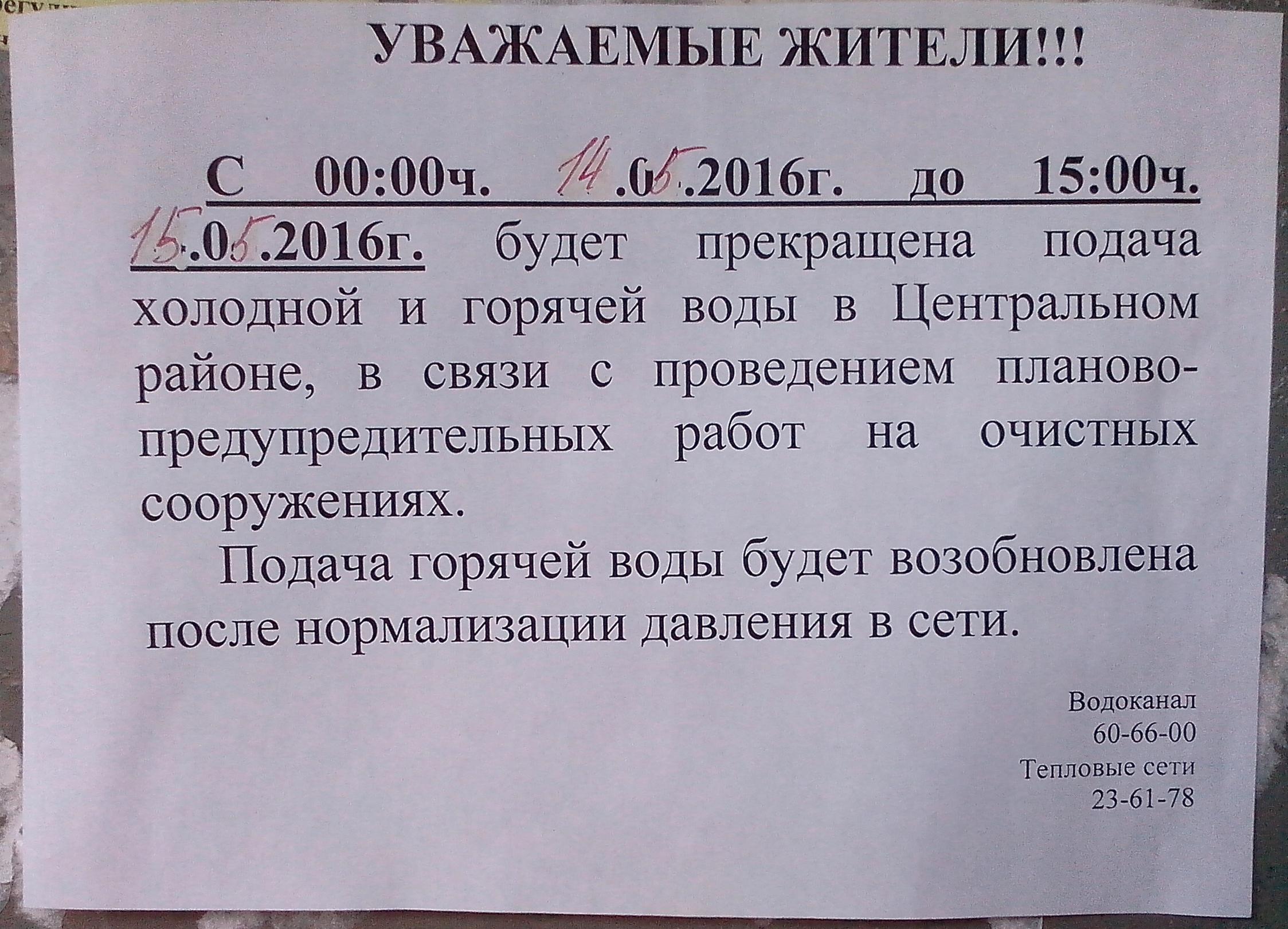Plus, mirsoft, спасибо! На Невской объявлений нет. Зато есть слухи, что не будут отключать 14-15 мая, а будут 17-18 мая. Никакой определенности!!!