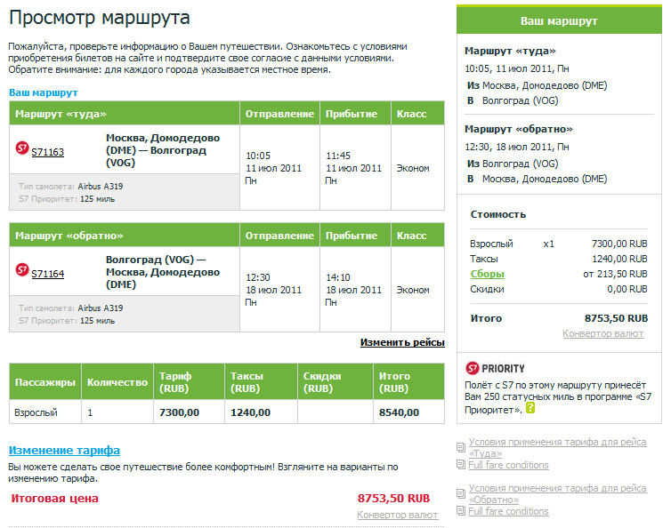 Владимир, я потом исправила) когда необходимо(из-за времени) было лететь в прошлом году Аэрофлотом, отдала 11 тыр с копейками ---------- Сообщение добавлено 15.06.2011 16:07 ---------- по поводу С7! проблема еще и в том, что я рассматриваю и летаю только из Шереметьево( живу на севере и с ужасом представляю, как буду добираться к Дмд! поэтому остается только Аэрофлот и Авианова