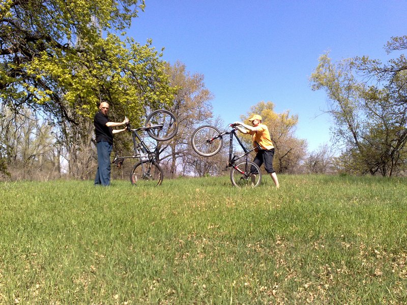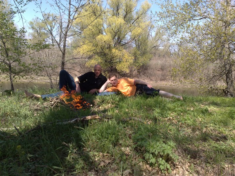 Накануне покатушки добро было получено от многих. Утром в субботу стало ясно, что скорее всего я и michael2000 едем сами, хотя в центре около 10 часов к нам должен присоединиться колоритный Олег. Многие отказались от поездок по разнообразным причинам, но отмазками это назвать не могу: люди уже достаточно хорошо знакомые и проверенные. Начало поездки растянулось надолго. Выехали мы с Мишей в 9 утра, решили двинуть на электричку, чтоб поменьше дышать особенно свежим утренним выхлопом и сэкономить чуток сил для поймы. Докрутили до Обувной – и в элку. На пригородном вокзале обнаружили, что снами в одном поезде ехала милая девушка на синеньком GT. Глядя на ее потерянный вид перед ступеньками вокзала, Миша, подъехав первым, проявил джентльменские качества: предложил занести ее велик внутрь здания и переправить его через турникеты. Только от участия в совместном освоении грунтов поймы она все равно впоследствии отказалась: уж больно озорной вид был у Мишки. Олега задерживали на работе. Ждать было скучно, и с целью развлечения мы искатали весь центр, побывали на центральной набережной, съездили к еще закрытому «Байку», постояли возле «Сплава», позвонили PSV, у которого поломалась вилка … Потом закупились в «МАН’е» . Устав ждать Олега в городе, отправились на мост. Вид был потрясающий: все залито: ЛЭП, деревья – все словно растет из воды. На выезде из Слободы около магазинчика еще часа полтора ждали догоняющего Олега: так долго его держали эксплуататоры-капиталисты на работе. За это время имели возможность полюбоваться на стремящийся во всей красе на отдых народ… А вот и Олег! С десяток км асфальта (все это Миша сопровождал нелицеприятными комментариями: настолько уже надоела ухабистая пыльная лента с кучей автомобилей!) – и мы на грунте. Ласковое солнце, легкий весенний ветер, накатанный грейдер, щебет птичек, зелень трав и листвы крон… Лепота. Но все наши опасения по поводу последствий постройки моста оправдались: яблоку упасть негде, везде отдыхающие на автомобилях, кто с палатками, кто с мангалами, но почти все - с шумом и такой нелепой в этих местах музыкой… Печально, но факт: по выходным найти хорошее место, приехав даже раньше других, еще не будет означать отсутствие неспокойных соседей. В поисках лучшей доли мы совершенно незаметно оказались в каком-то селе. Ответ на вопрос пролетавшей мимо на «Каме» девушке нас немного обескуражил: Репино. Помню, еще в прошлом году расстояние до него казалось таким далеким… Выехали мы за Репино, искали-искали… И наконец нашли тихую поляну без соседства на берегу ерика. А далее – вполне обычно: отдых у костра, обед, беседы, шутки, немного фото. Отдохнув, решили поискать в окрестностях еще места на будущее, нашли недалеко расположенные от села, но чистые и тихие укромные уголки. А после поехали домой, пытаясь запомнить, как же мы попали на грейдер. И вот что забавно: каждый раз история повторяется, ибо все пойменные дорожки словно близнецы, мы пытаемся запомнить путь и раз за разом ищем его заново… Топографический кретинизм? Ехали, мечтали о GPS. На обратном пути Миша 2 раза прокололся: в Репино заднее, в конце моста - переднее колесо. Оба раза выручили запаски моя и Олега, остановки были всего по 10 минут. Еще из расстройств: авто на грейдере столько, что мы просто устали уступать им дорогу и потом глотать поднятую и