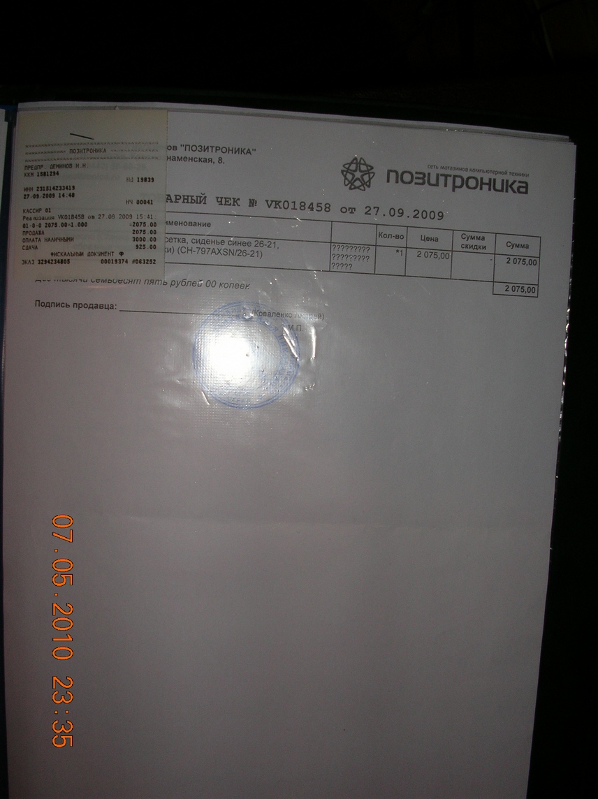 Вот возникла проблема, сломалось комп. стульчик... Взят был в Позитронике 27.09.2009г. Сломался конкретно, порвался металл... Могу ли я заменить изделие в магазине, или обращаться в комитет по защите прав потребителей? Гарантия не указана Как быть? Ещё раз выкладывать 2 рубля?
