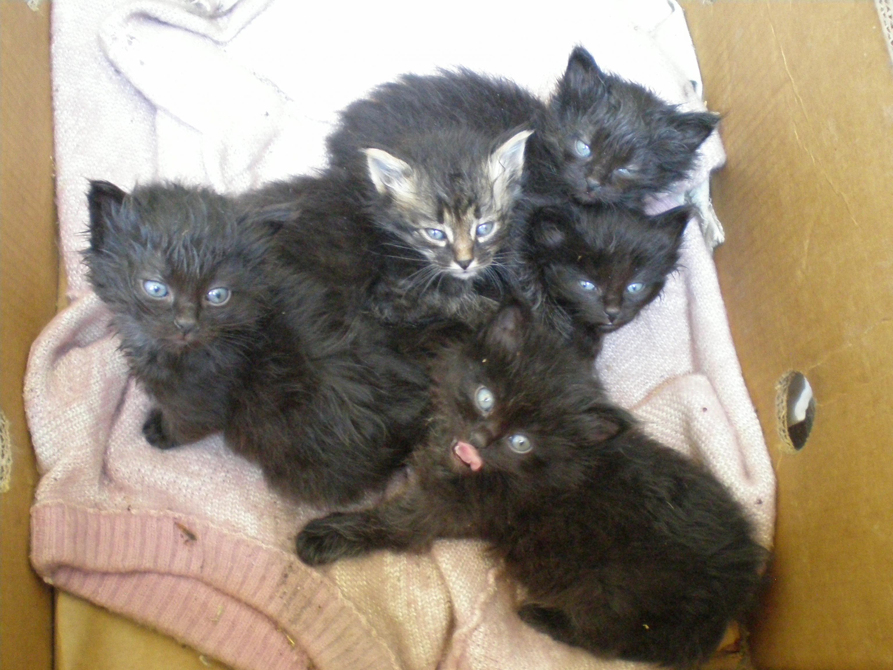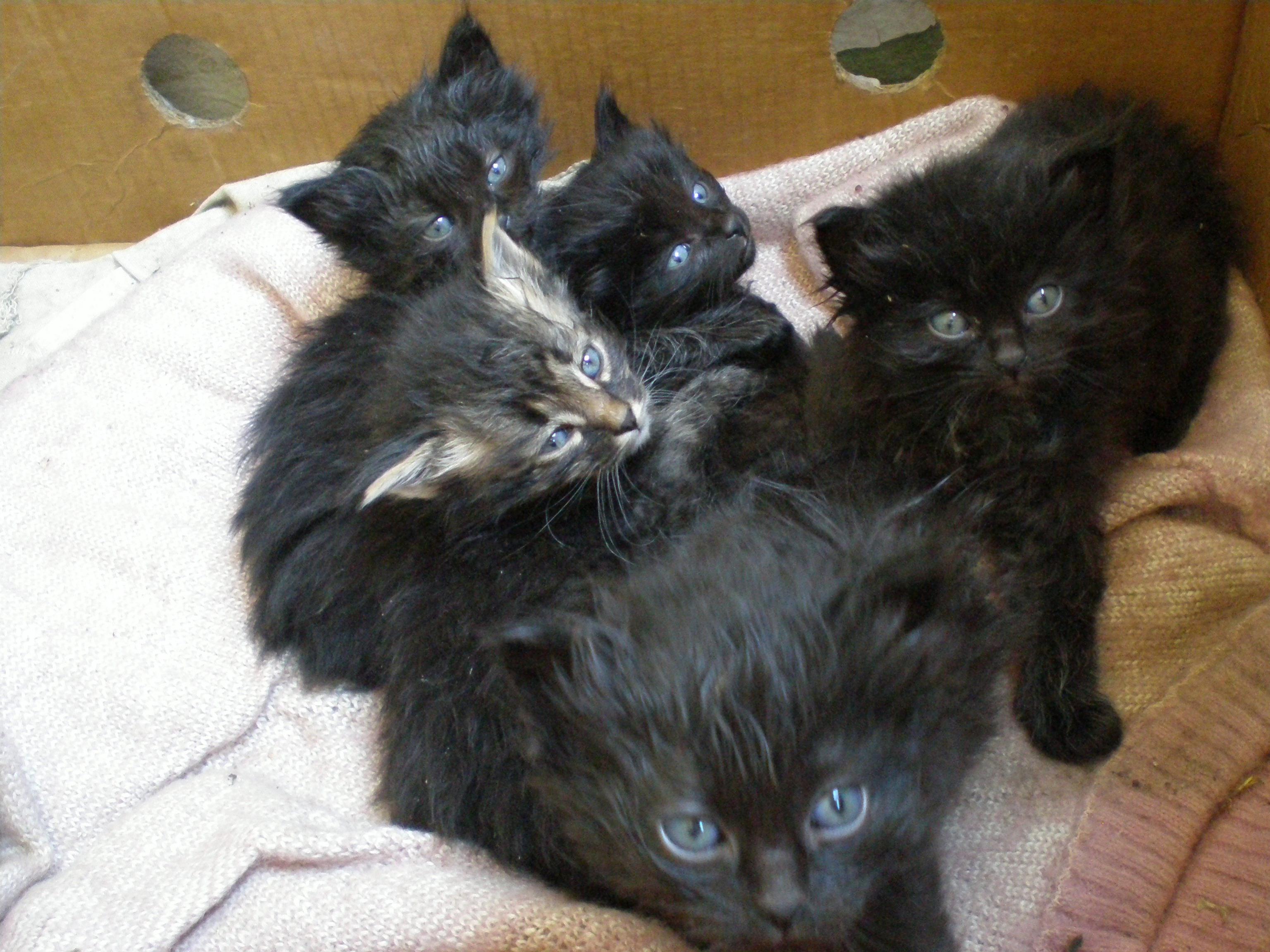 Так уж сложилось, что в возрасте месяца, 5 замечательных котяток остались без мамки (разодрали собаки на пороге своего жилища). Мама-кошка была пушистой кипельно-чорной кошкой, умной, т.к. жила в офисе фирмы и оч. ласковой! Котята, судя по всему, в маму(4 кошечки и 1 котик), пьют молоко и пытаюца жевать кожицу от курицы. Умываться пока не научились, потому чумазые такие. Кому интересно, звоните в будни по тел. 919-545-24-83, Лена.(в рай. Тракторн. рынка)