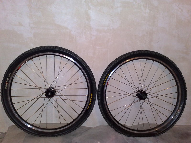 Колеса (сток с Форварда 1112 2008 года): обода под ви-брейки AlexRims ACE19 спицы – сталь втулки под диск (6 болтов) с картриджными закрытыми подшипниками (т.н. "промы") перед Formula Engineering DC91 (214 грамм) зад Formula Engineering DC32 (453 грамм) Такое вот сочетание придумали производители велосипеда. Колеса обкатаны, пробег 100 км по сухому асфальту в начале этого сезона. Цена - 4000 руб. Покрышки: Maxxis CrossMark Kevlar 26x2.10 , пробег 700 км (асфальт+грунт), износа не видно совсем. Цена 550 руб. за штуку, отдаю парой.