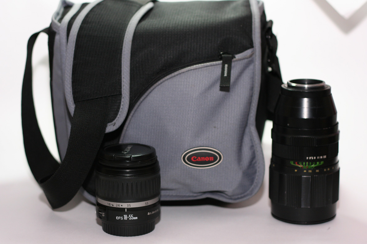 Продаю фотосумку Кэнон, про ее размер говорить не буду, ибо для кого большая, а для кого не понятно что. От себя добавлю - от сумки оч хорошие впечатления - качественно сшита, хорошие швы, имеет три формируемых отсека влезает камера с теливиком(типа юпитер 21), вспышка и еще пару мелких объективов, два внешних вместительных кармана(шнуры, зарядка) и несколько внутренних отдельчиков. Причина - вырос из нее, стала маловата. Цена 500р. P.S. на фото 18-55 и Юпитер 21м.