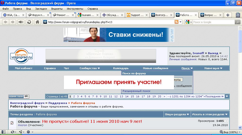 В Опере висит баннер встречи, который закрывает мне меню поиска и сообщества, когда я их нажимаю. Нельзя ли его перенести на задний план? Кстати в IE у меня нет этого баннера)