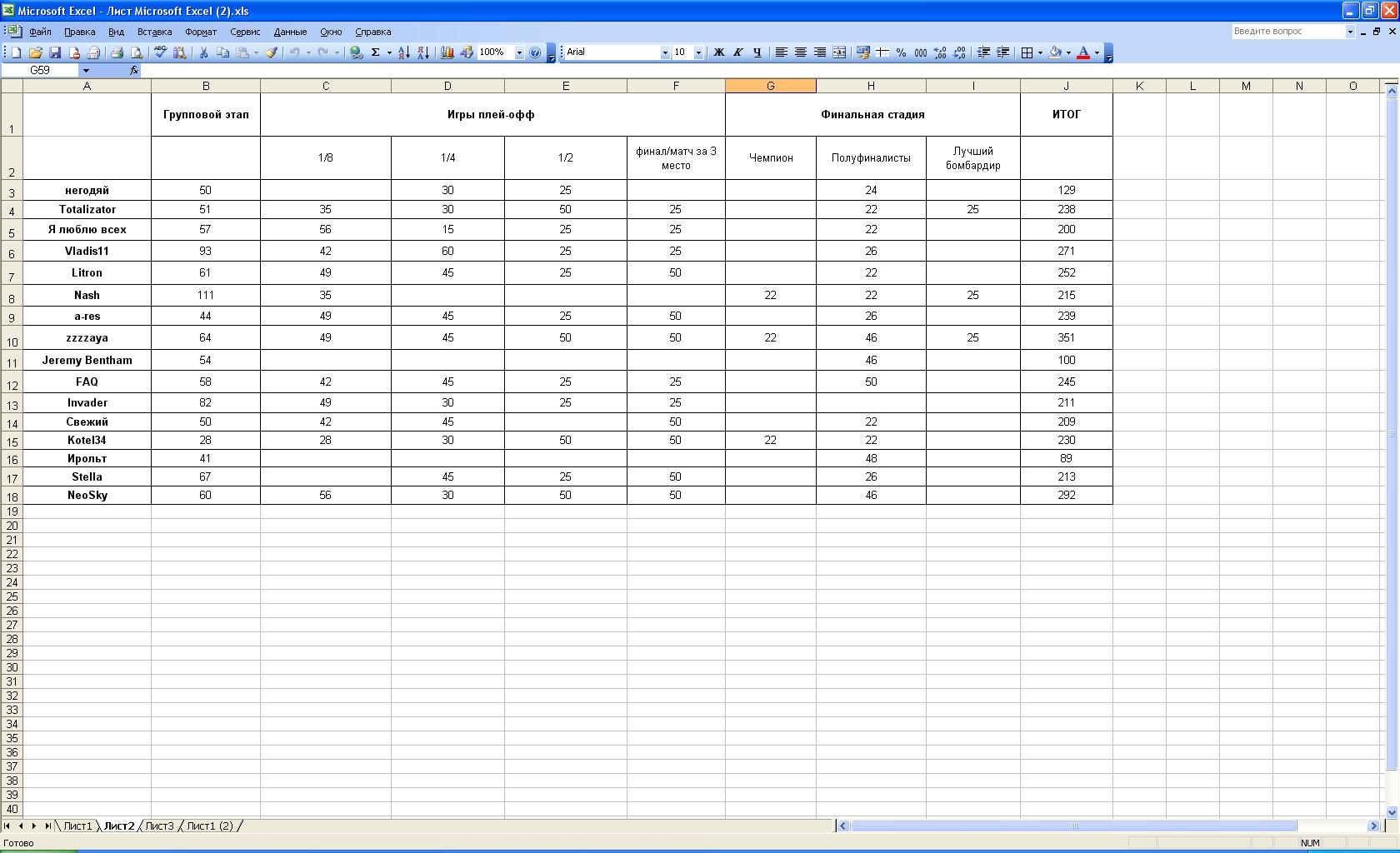 Опа, неплохо я на групповом этапе дал очков. Жаль, не знал и не следил что будут доп очки за угаданных полу, четверть финалистов