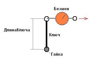 когда меряешь натяг в подшипниках , вал нужно крутить на несколько оборотов.Замеряя момент при котором он вращается. безменом за ключ крутить вал на несколько оборотов неудобно Поэтому берем шпулю из( я делал из мдф), расстояние от центра до лески 10 см( радиус шпули) это в твоей схеме длина ключа. а безменом меряем усилие. С уважением В