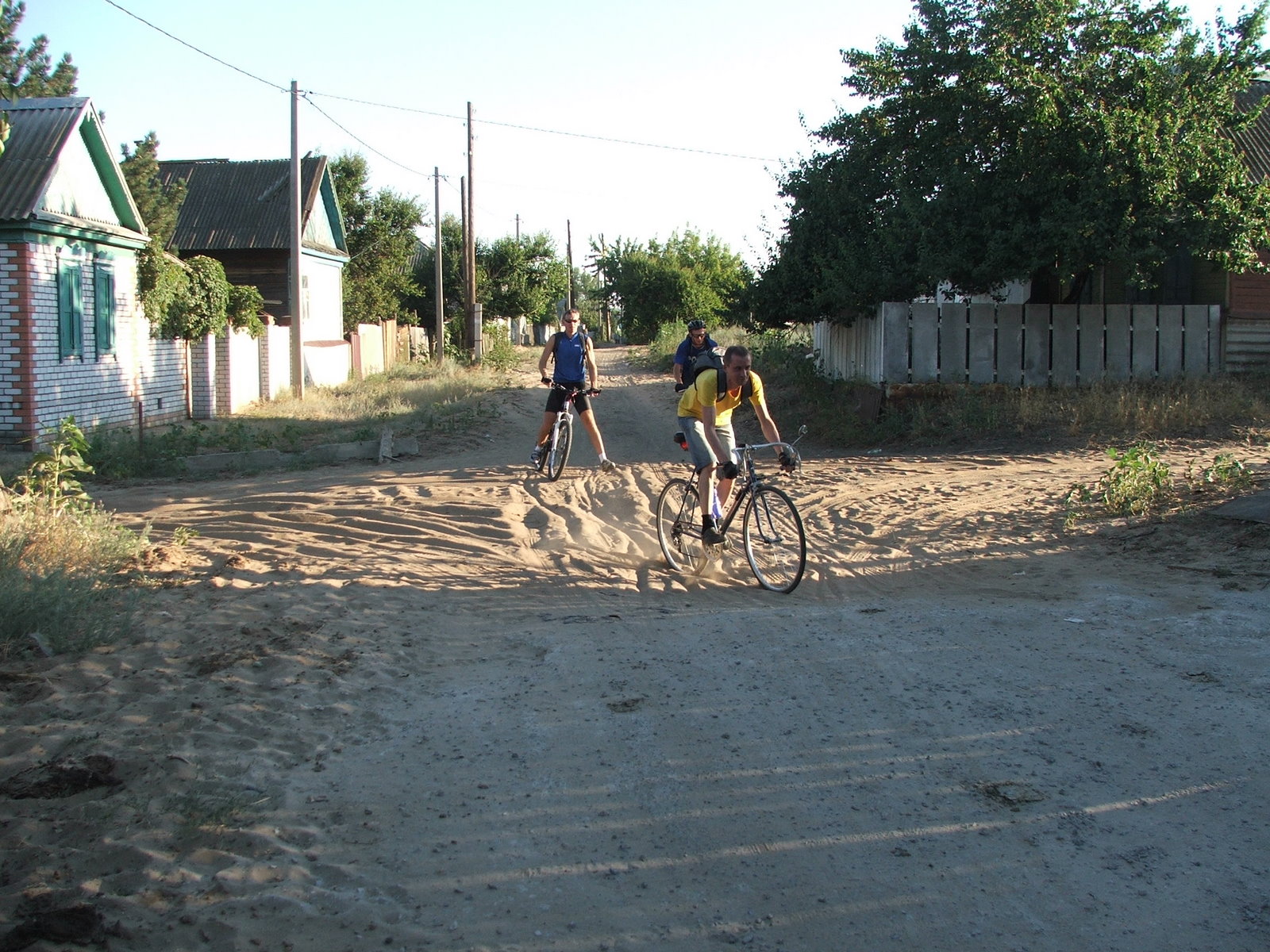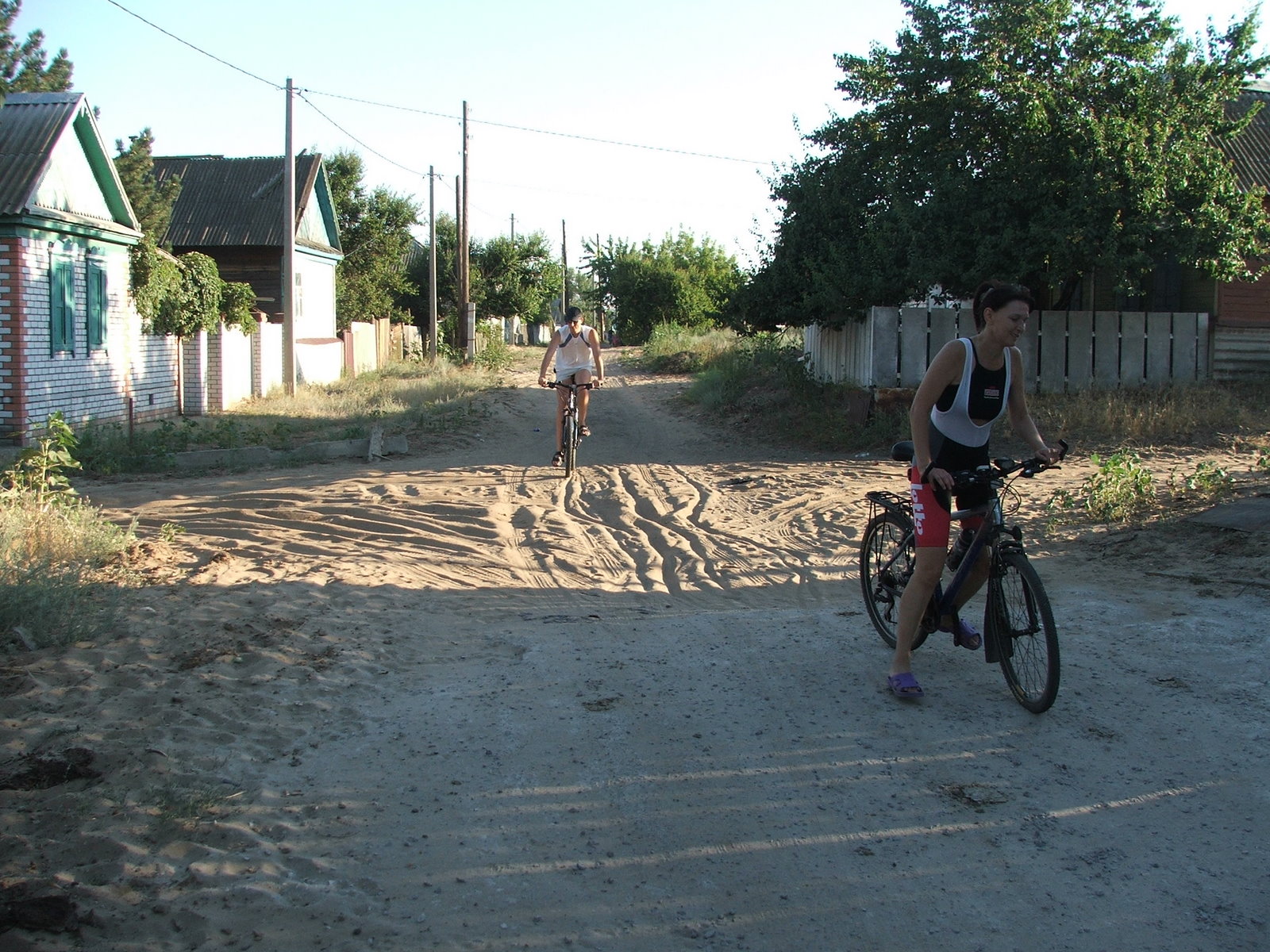 Поездка в четверг была в большей степени спортивной, чем прогулочной. От Европы до Европы 52 км. примерно с 8 до 11 вечера. Ездили вчетвером. Песка в тех краях нет, но на растрескавшейся земле, похожей на злую стиральную доску, трясло нещадно. Темнеет заметно раньше, поэтому на Бакалду выехали почти в темноте. Это не помешало приверженцам традиций искупаться и перекусить. Подъехали к Европе усталые но довольные. Аист конечно устарел, но сделан крепко. Недостатки его компенсируются моими ногами. Поэтому - если ехать надо, то можно.