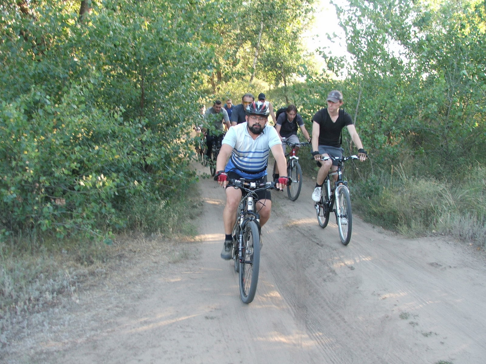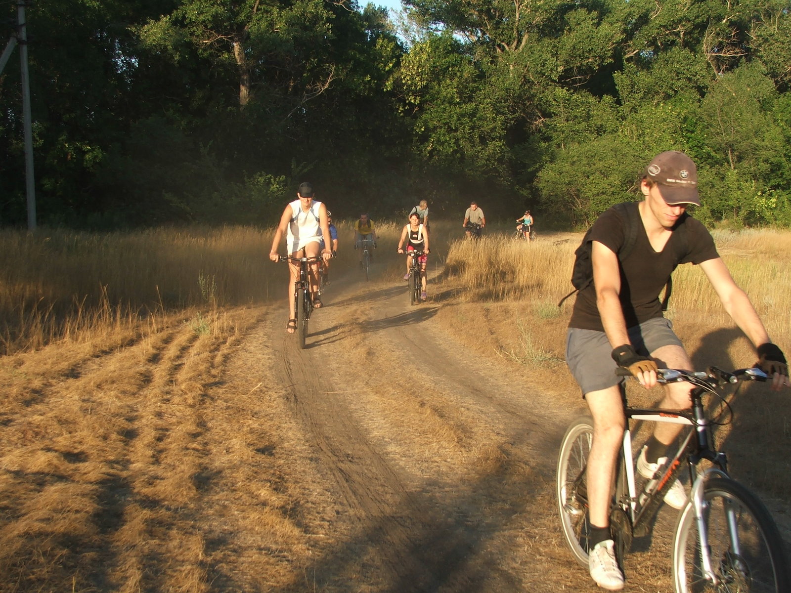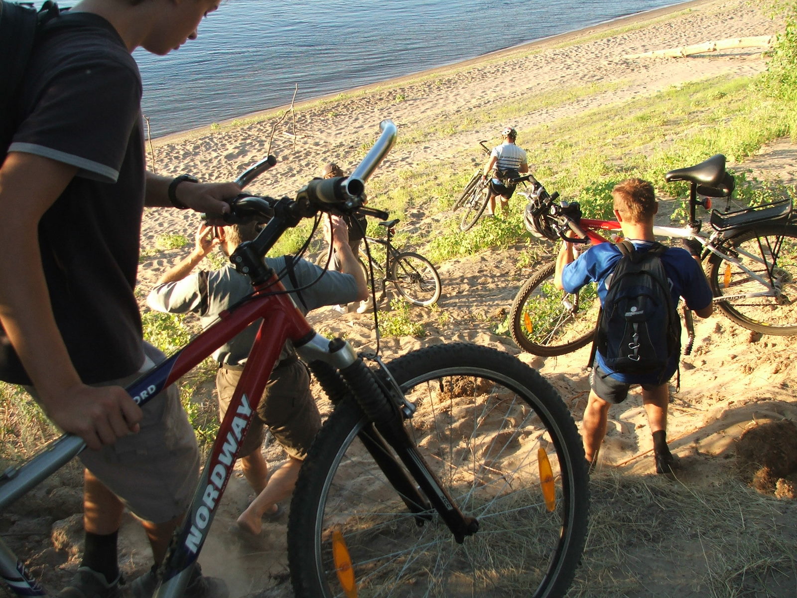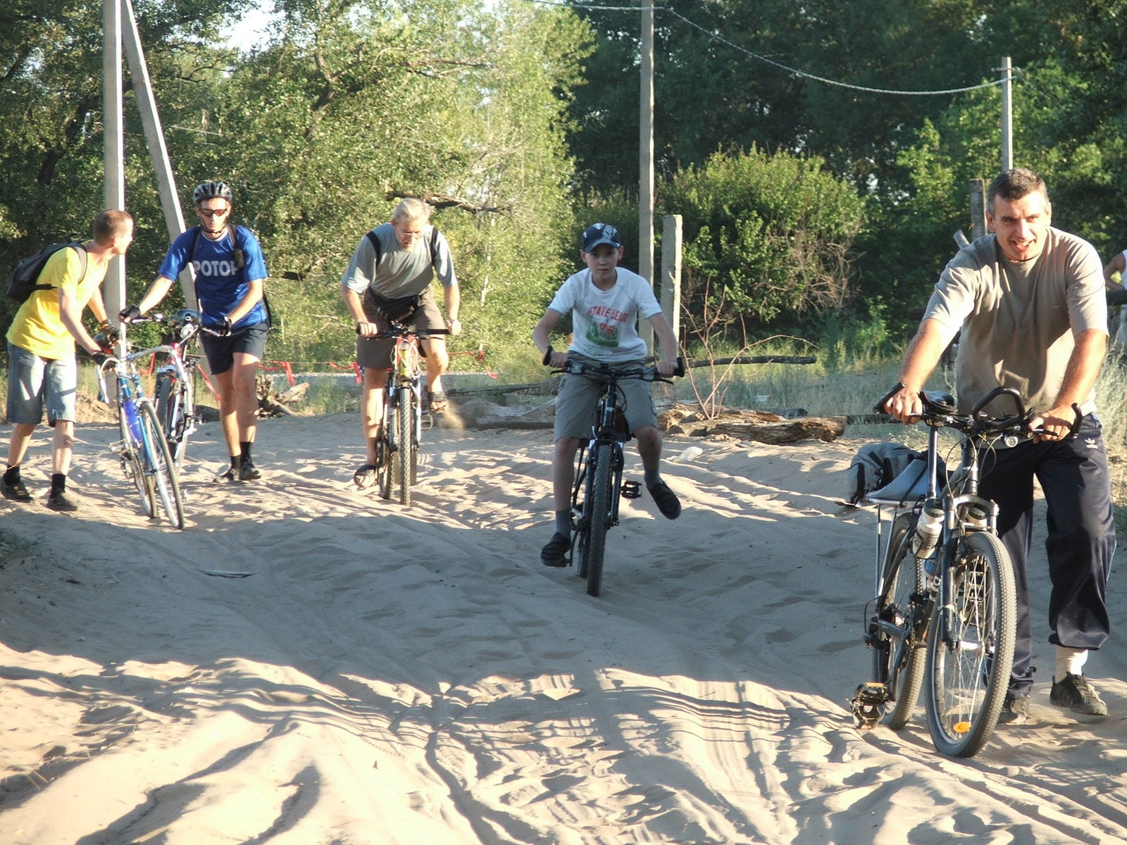А у меня на флешке битые сектора. щас попытаюсь восстановить, но возможно - финальная часть фоток потеряна безнадежно. В общем ждите, в течении дня выложу, что останется целым ---------- Сообщение добавлено 21.07.2010 12:00 ---------- Ну в общем с самого начала в глазах запестрило. Столько велосипедников в одном месте - просто рай какой то. Поговорили, построились и двинулись по мостику, а за ним свернули в Бобры. Местные жители и козы были несказанно обрадованны нежданному развлечению, и проявляли крайнюю любопытность. А сразу после хутора нас поджидал тот самый песочек, которого нам обещали не более двух метров. Забегая вперед скажу, что песка оказалось раз 10 по 2 метра, и несколько чуть большИх по длине, и один метров этак на 150. в общем было здорово. Проехав еще некоторое рассояние - буквально километр или чуть более, мы наткнулись на полянку, где обнаружили детский палаточный лагерь. Искренне порадовались за детей, которым было явно по кайфу их времяпровождение, и стали ждать немного отставшую часть группы. минут через 5 поехали дальше, и скоро оказались на замечательном пляже. Вернее НАД замечательным пляжем, и естественно мы туда спустились вместе с велосипедами, и там уже отдыхали. Вода!!! действительно, Такого купального лета я больше припомнить не могу. сколько не плаваешь, а вылазить нет никакого желания. Trident был костровым, а по совместительству - чаечерпием.