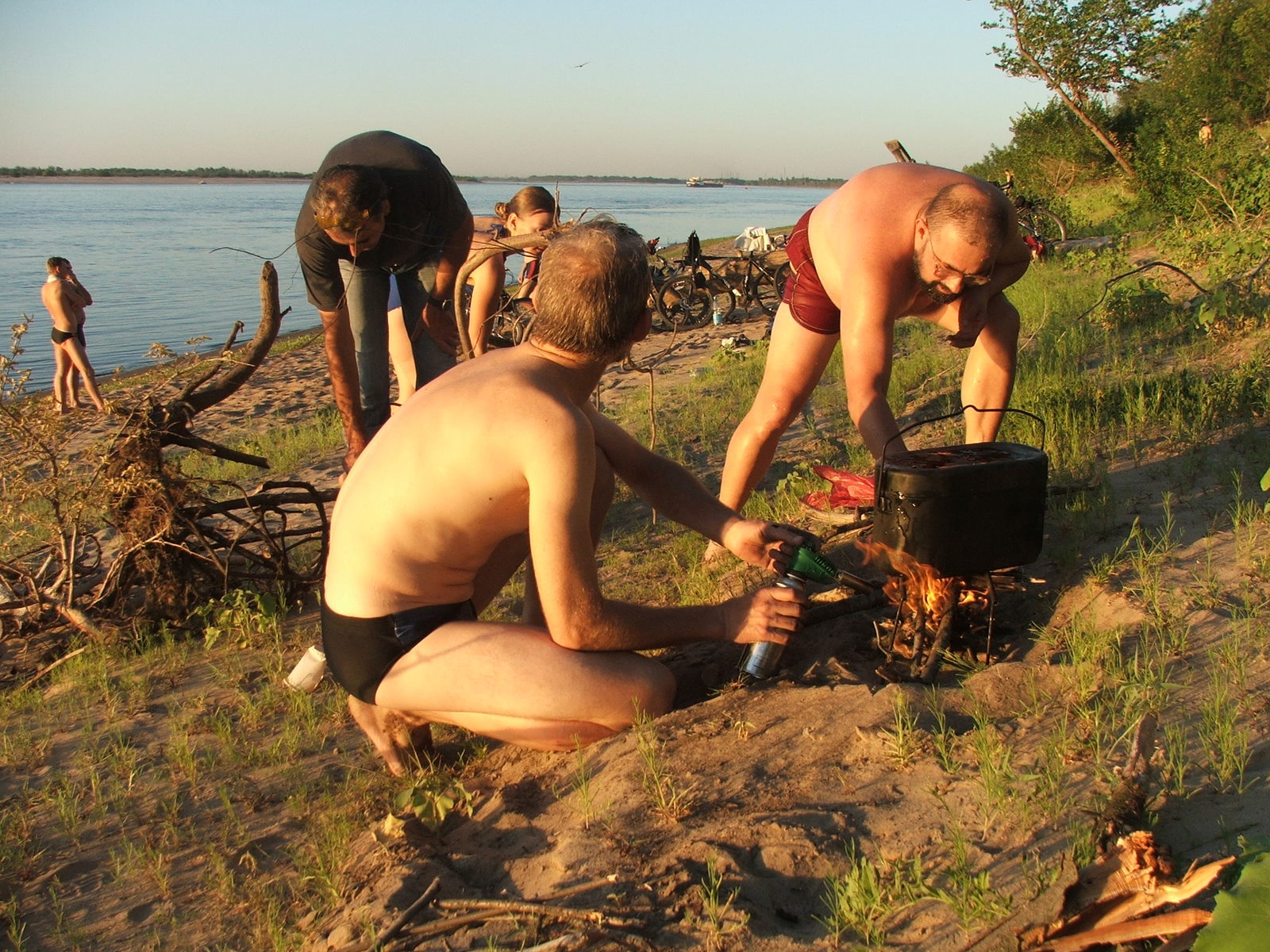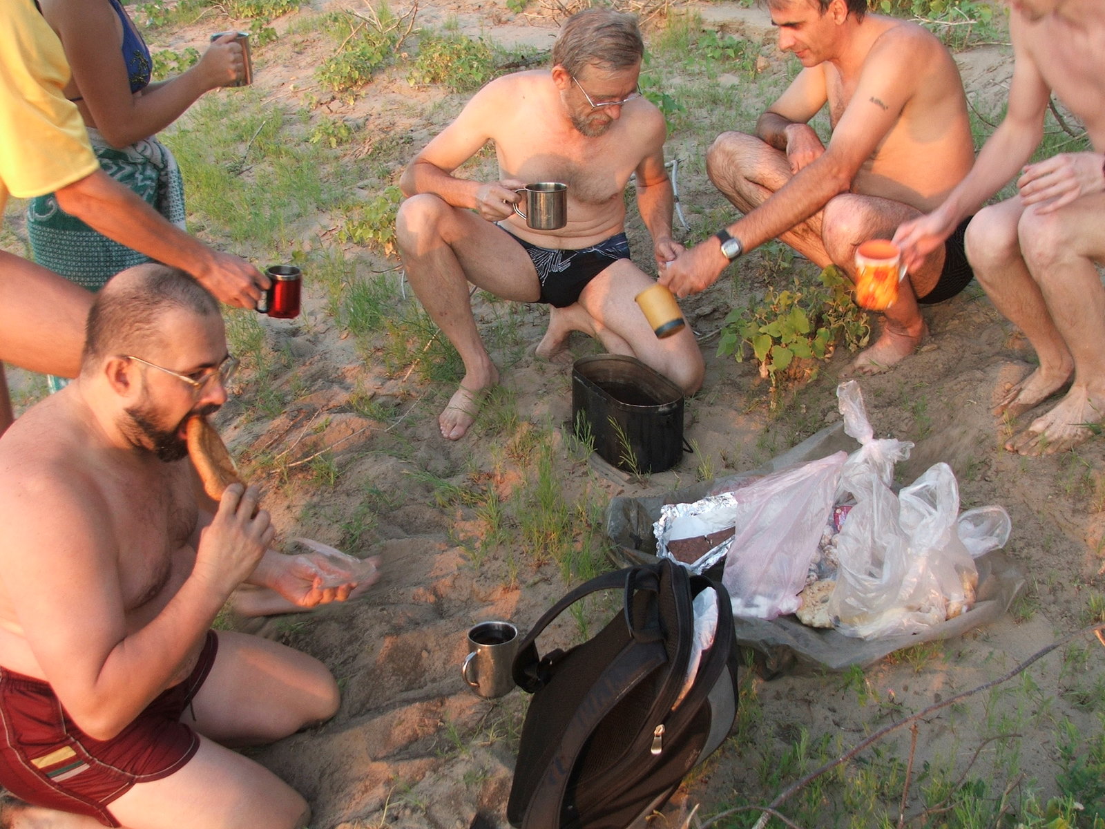 ХА-РА-ШО! Мощный закат, прекрасный пляж, ночная пойма и толпа симпатичных человеков в 56 рук и ног. Правда, песка было чуть больше, чем требуется для полного расслабления и слияния с ночной природой, но лично мне - это полезный экспириенс. Интересен отчет группы, поехавшей в сторону юж Бакалды. Волгу успели найти до темноты?