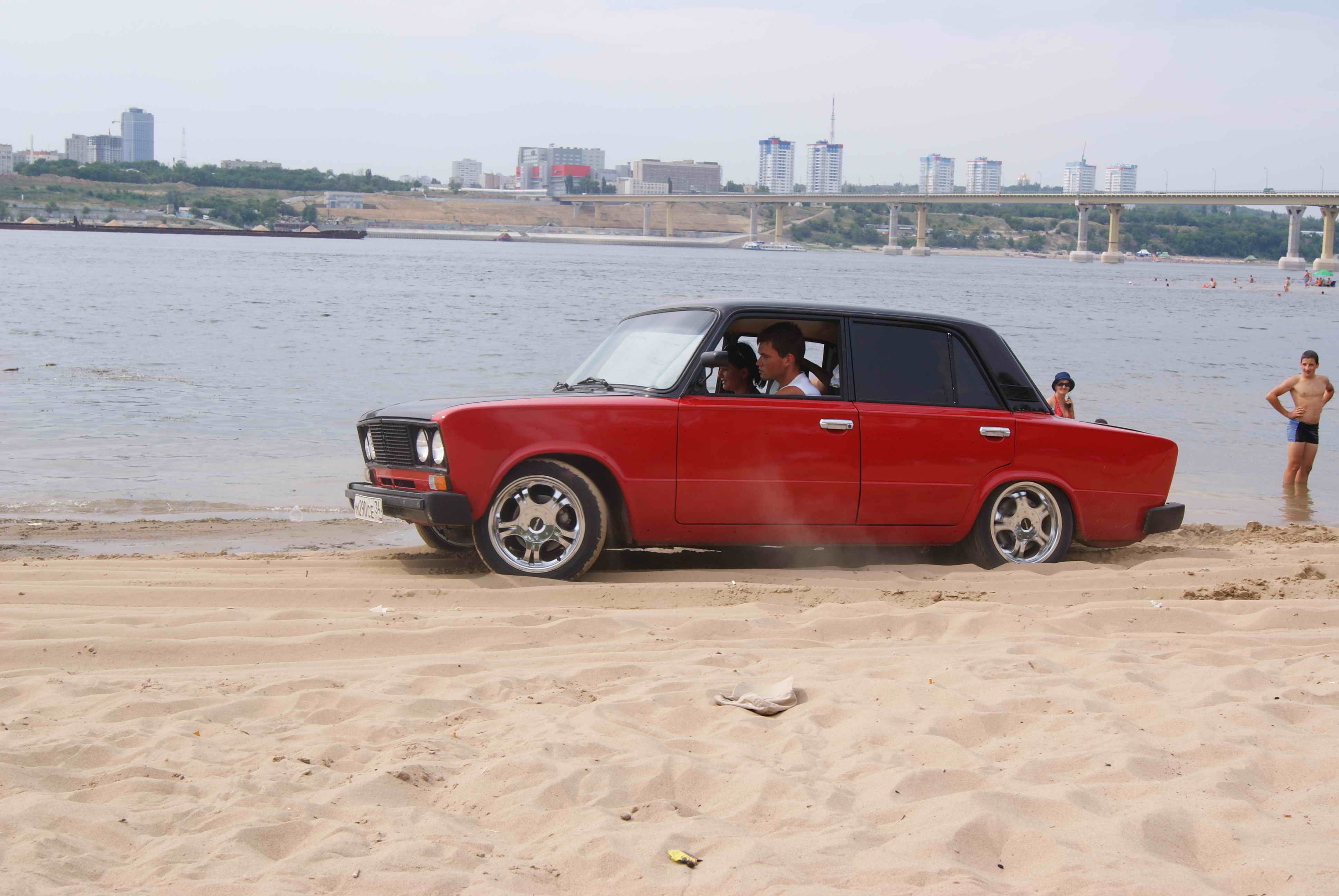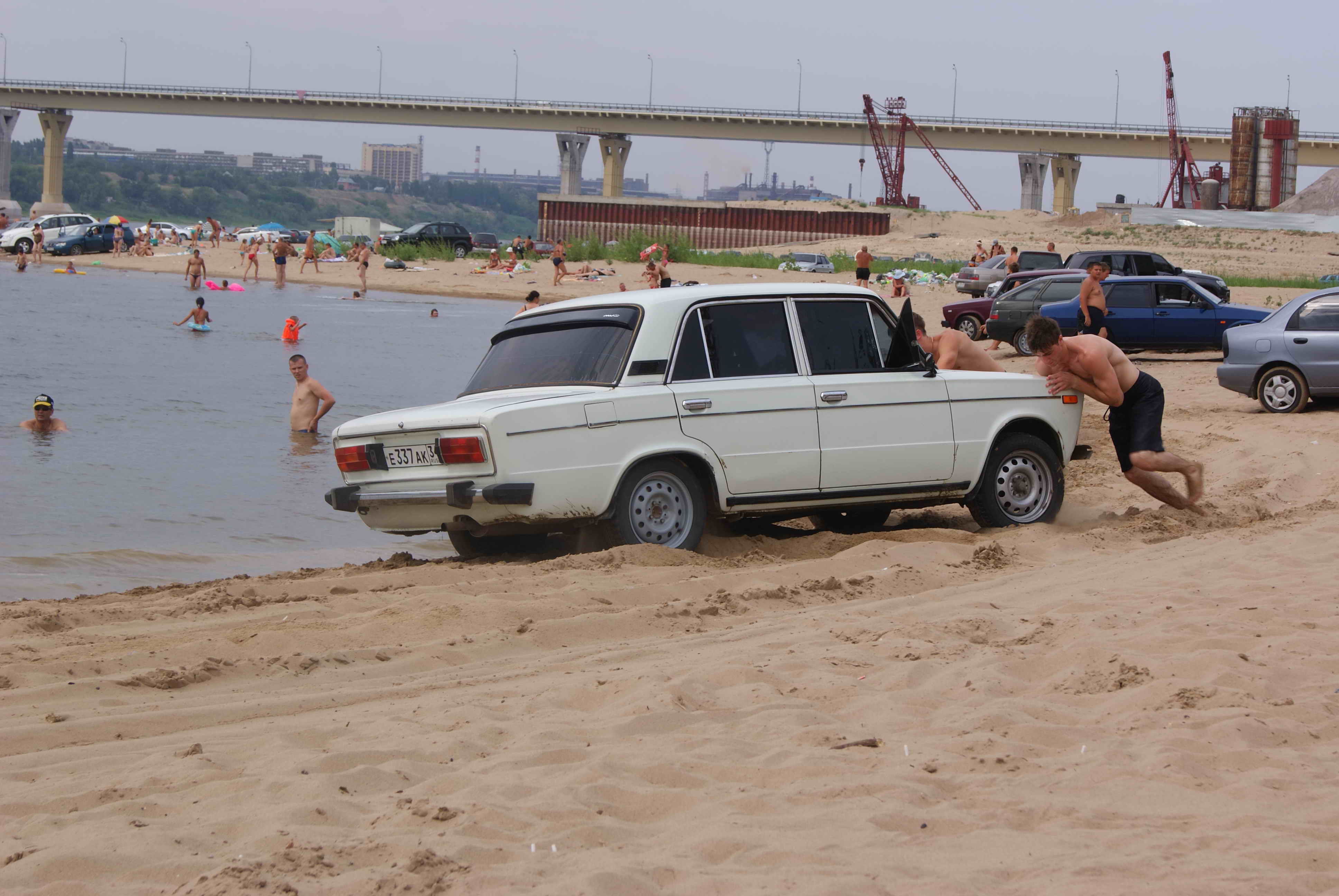 Такое зрелище приходилось видеть весь день, причем как правило такие "перцы" делятся на 2 категории: иномарки и наши переднеприводные которые проезжают достаточно безпрепятственно по песку и особо одаренные на классике, которые садятся в тот же самый песок, наверное в этом особый кайф толкать потом на виду у всех и газовать чтобы все дышали дымом от машин? Предлагаю размещать фотки, может хоть у кого то совесть проснется? Хотя это маловероятно....