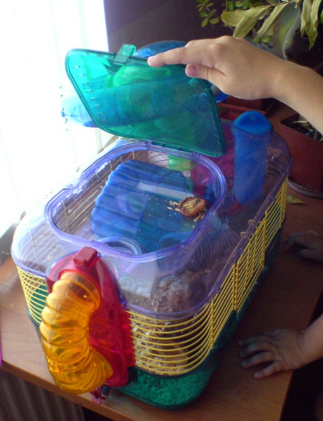 красивая клетка... эту клетку да нашей дегуше..за ночь ни одной трубки бы не осталось а где это? а не заметили - там не было металлических колес в клетку? не очень большого размера? Нигде не могу найти..а пластик за одну ночь был сгрызан до основания..