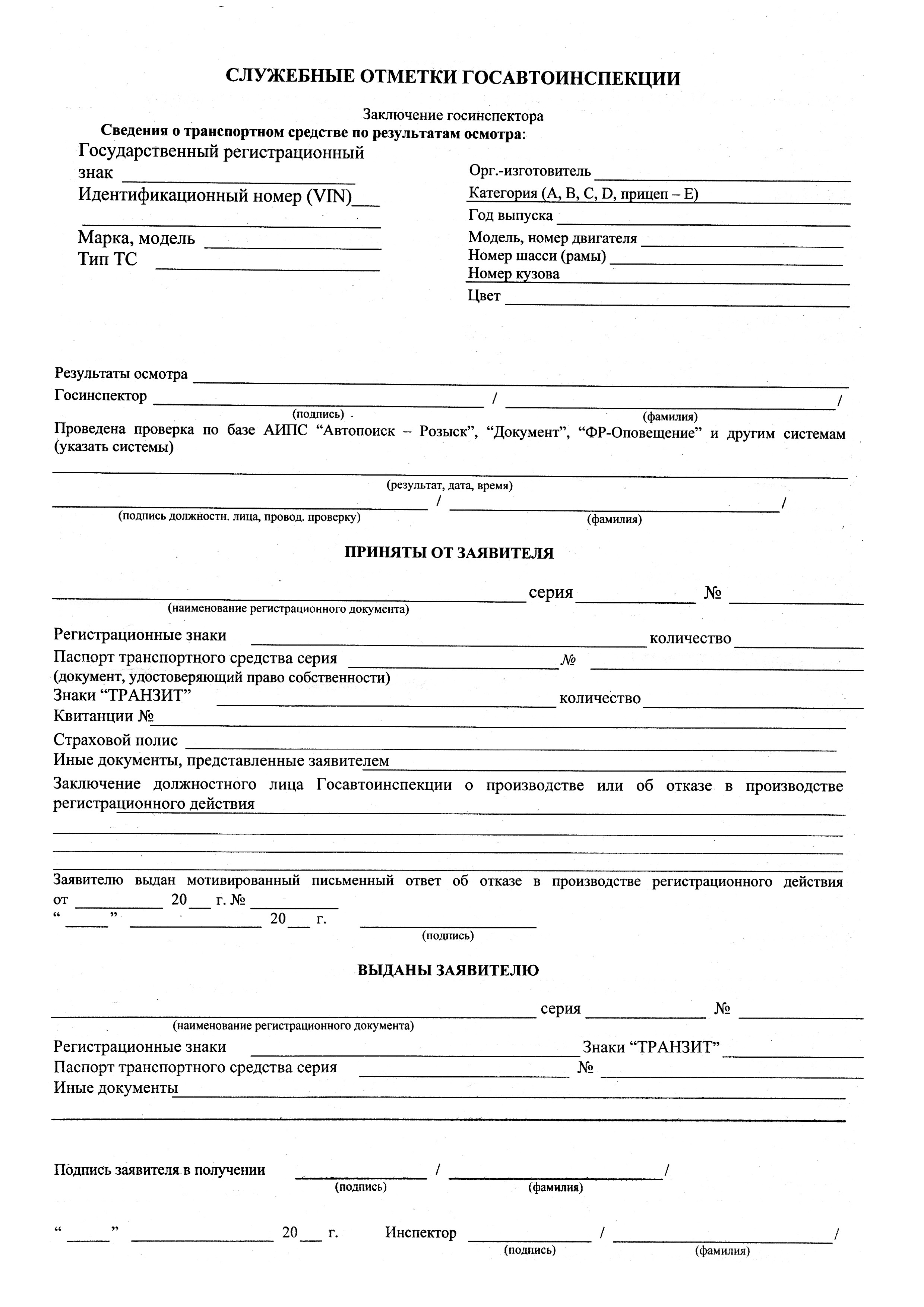 Вот бланк заявления, он двусторонний. На оборотной стороне верхняя часть тоже заполняется заявителем.