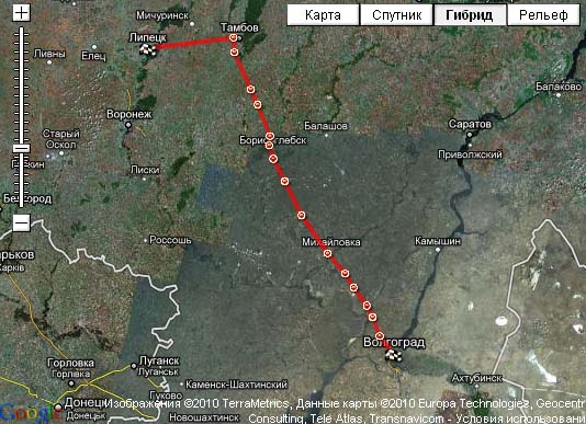 По дороге... М6 639 км До Тамбова, потом левый поворот... ещё 126 км. Можно, конечно и через Воронеж. Только это 925 км, хоть и дорога лучше...