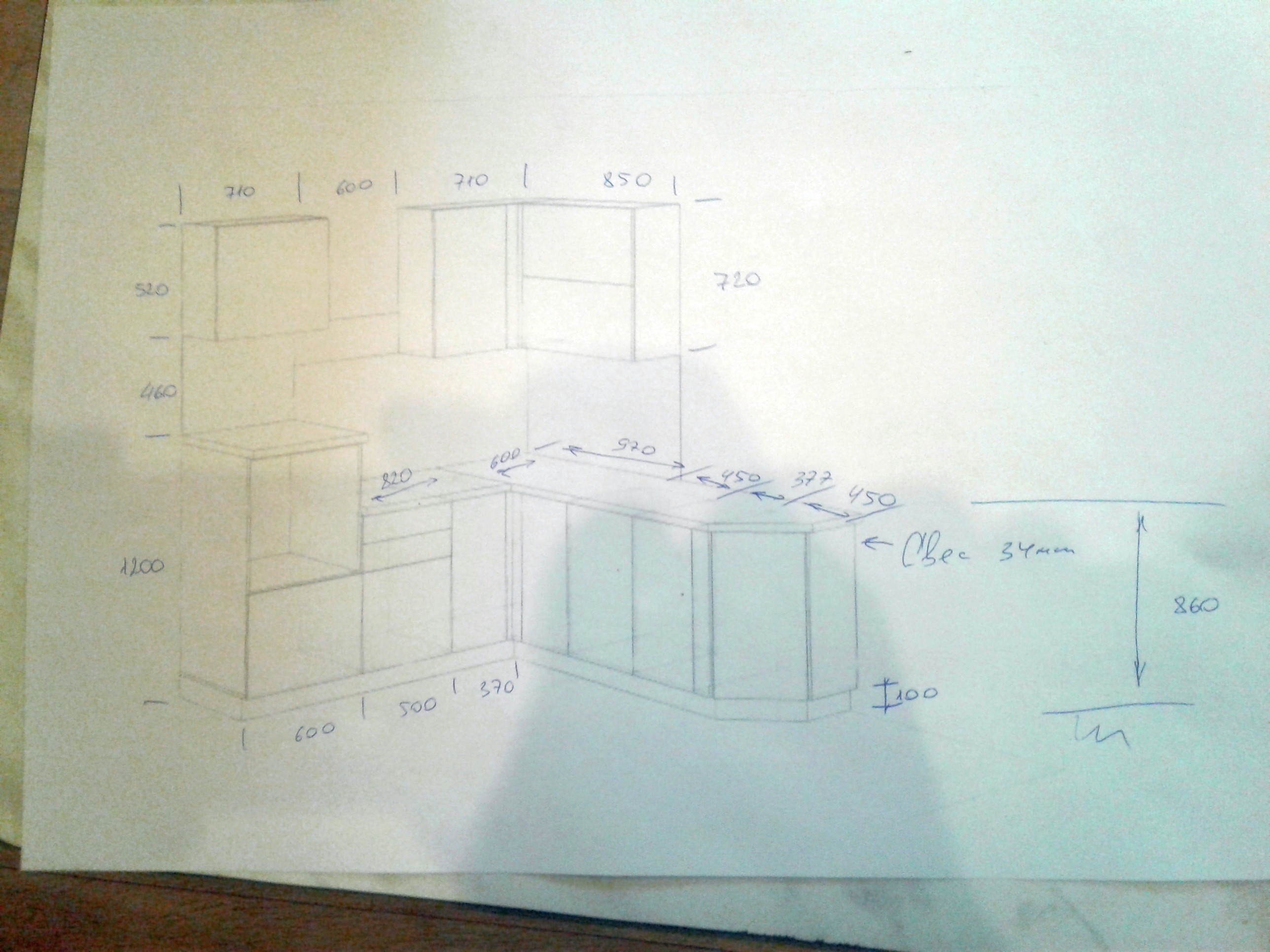 Посчитал в Леруа. Конфигурация не очень, в моем случае изготовления на заказ за 65000 значительно интереснее получается. Фасад считался Фрейм-светлый, и столешница Арвика. Ценник 50500 + 5000 установка + 600 доставка. В общем буду заказывать за 65000, еще немного переработаю ее. Приложил вариант своего чертежа, чтобы понимали в пересчете на саму кухню, что за что А фото готовой кухни, это делалось год назад. Новая будет точно такая же (фасад - пленка пиксель светлый, столешница - сахара светлая). Напомню ее стоимость была 45000. @NeoSky, да, имхо дорого. Я думал, что в Икее будет значительно дешевле. Хотя бы в районе 50000, и можно было уже ее привезти оттуда. Ольга_М тут как-то активно рекламировала покупку кухни в Икее, но реально дороже получается, чем можно сделать тут.