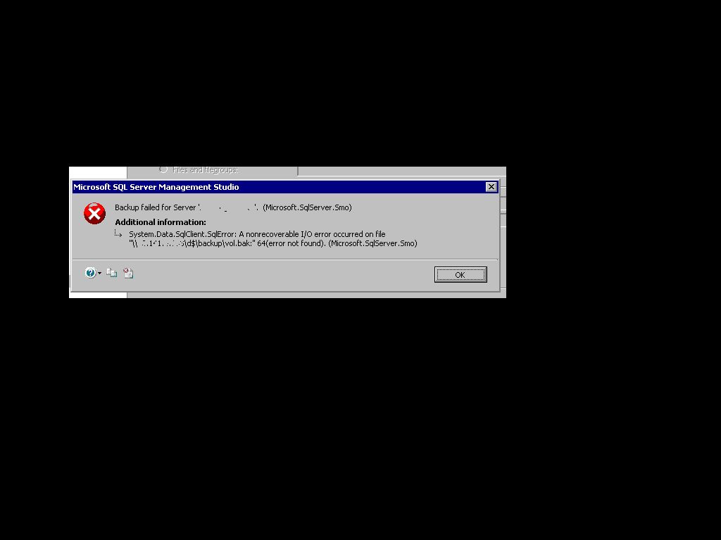 А если я сообщу что базу небольшого размера (master например) я так же по сети копирую с опцией overwrite нормально??? А вот большую базу 6 Гб уже так не получается скопировать....пишет ошибку обозначенную выше. Тут дело не в правах, а в железке на которую идёт бэкап видимо....