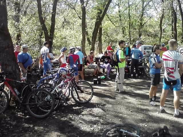 Промаркировано было отлично. Мне только один раз пришлось тормознуть слегка, чтобы сориентироваться, и то сам виноват - на повороты надо заранее смотреть. Были интересные решения, вроде баллонов из под пены, выложенных в дорожку, и одноразовых пластиковых тарелок, понавешанных на кусты. Смотрелось забавно. В сложных местах были судьи, которые заранее подсказывали дорогу. Круг 14 км по такой местности - огромная дистанция. Поворотов куча, совсем идеально все промаркировать сложно. Но большинство участников справились. Надо почаще организовывать хотя бы небольшие междусобойчики. Одно дело просто покатушки, другое дело соревнования. Совсем другая нагрузка на дыхалку и мышцы. В небольших дозах должно быть полезно.