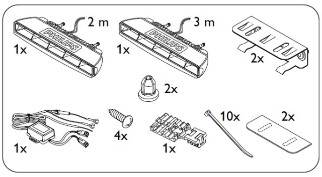 Дневные ходовые огни Philips, 4700 руб Мощность светодиода: 1,5 ватт Сила света: 650 кд Производитель: Philips Маркировка на стекле: 00RL E4 0013 PHILIPS Габаритные размеры, Slim: ширина 182 мм, высота 21 мм, глубина 51 мм (см. фото 2) Количество светодиодов: 5 сверхярких "LUXEON® LED" на секцию Световой поток: белый Номинальное напряжение: 12V Тип осветительного прибора: светодиодный, для использования в дневное время в качестве дневных ходовых огней Код изделия: 12810WLEDX1 Цена: 4990 руб. Скидка: -6% Цена: 4700 руб. Philips LED Daytime Lights - подключаются непосредственно к клеммам аккумулятора - устройство включается только когда двигатель заводится, и автоматически выключается когда двигатель перестает работать и пропадает напряжение зарядки на аккумуляторе. Преимущества дневных ходовых огней Philips: - Простота и быстрота установки ходовых огней Philips (менее чем за 2 часа); - Наличие подробной наглядной инструкции по установке; - Универсальность (дневные ходовые огни могут быть установлены на большинство европейских и азиатских моделей легковых автомобилей; - Мощный световой поток яркого белого света делает автомобиль заметным на дороге как при пасмурной погоде, так и при ярком солнечном свете; - Экономичность (малое потребление энергии фарами дневного света дает в итоге снижение расхода топлива); - Долговечность - срок службы дневных ходовых огней составляет около 10-ти лет; - Удобство: светодиодные фары включаются автоматически при запуске двигателя и выключаются при включении стояночных фонарей (зависит от настроек подключения).