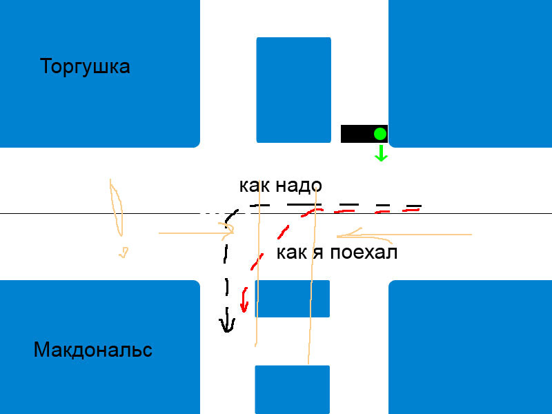 Во избежании таких "недоразумений" надо ТУПО запомнить: поворот на светофоре надо совершать как трамвай по рельсам.