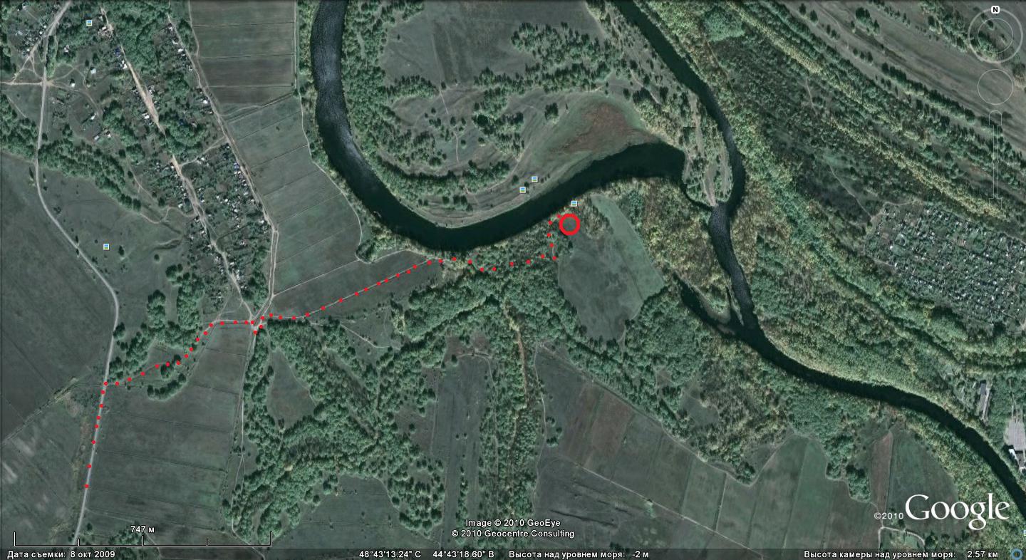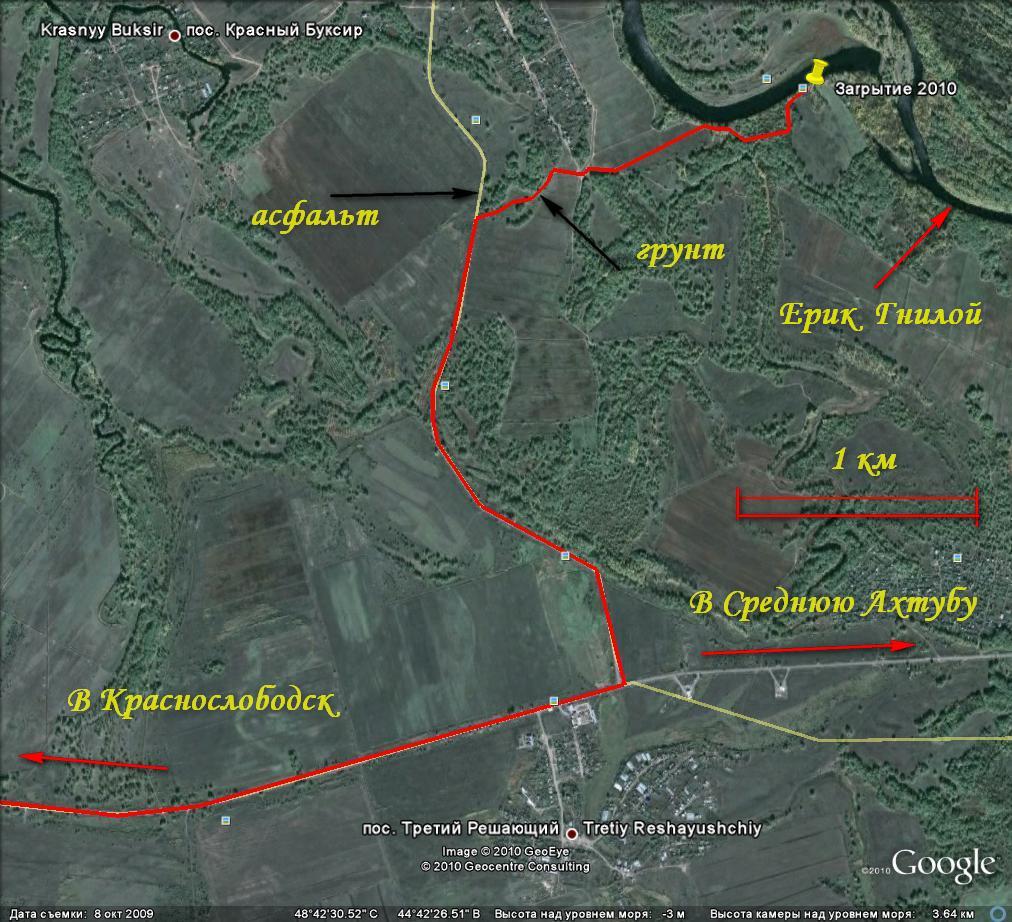Я бы рад, но в этот форум файлы kmz не грузятся. Воообще-то это место легко найти. От поворота с трассы Красеослободск - Средняя Ахтуба в сторону Лебяжьей поляны до поворота направо на грунтовку - 2,33 км. Далее - 1, 7 км. по грунтовке до Поляны (рис. 2). Держаться дороги, ближайшей к ерику Гнилому. Промахнуться сложно.