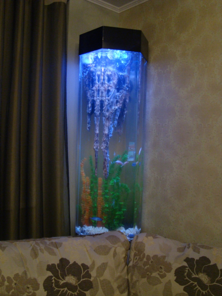 акриловый аквариум, колонна, 250 литров. В комплекте фильтр, подсветка, декорации... Цена 35 тыс