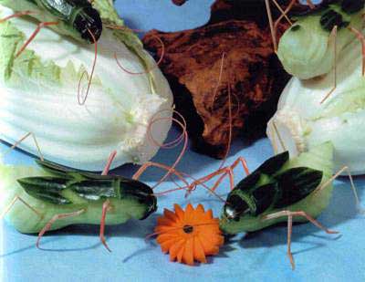 Aniri, сто лет назад читала статью одного шефа по поводу советских салатов на новый лад. Сельдь под шубой рекомендовалось делать в виде роллов, закатывать на циновочке. Мимозу выкладывали в высокие бокалы по порциям, не в одном салатнике. Оливье: крупный отварной картофель разрезать вдоль - это "миски"; выложить в них обжаренные на сливочном масле кусочки куриной грудки, нарезанные корнишоны, яичные белки; полить соусом - измельчённые блендером майонез, желтки, нарубленный укроп, зелёный горошек. Я делаю такой оливье, оч.нравится, больше чем традиционный. Только вот с "мисками" редко заморачиваюсь, обычно в салатник режу картофель. По поводу "мисок" - если фруктовый салат, можно разрезать пополам фрукты в толстой шкурке, типа грейпфрута или помело, и вытащить мякоть. ---------- Сообщение добавлено 06.11.2010 18:37 ---------- А, ещё тарталетки для закусок хорошо использовать. Недавно приятельница поэксперементировала - жульен сделала в тарталетках. Но ей не понравилось - весь соус впитался, получились пирожные с грибами.
