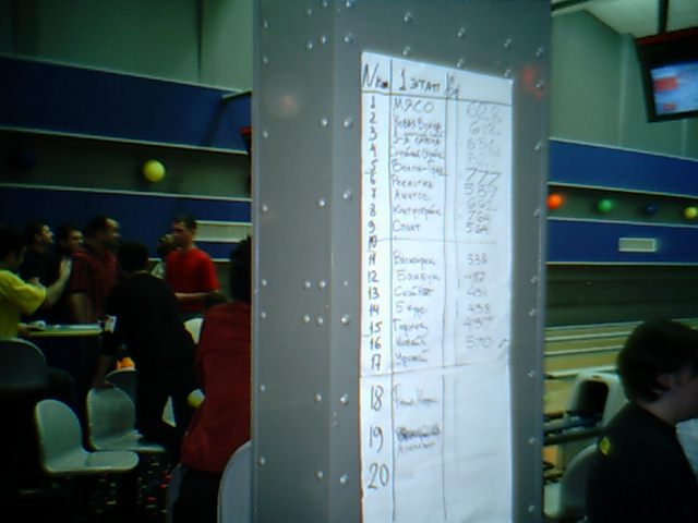 Итак все же довелось мне поиграть в этом турнире, сам не ожидал, приехал просто поглядеть. И нашел знакомых у которых как раз не хватало еще человека в команду. И это камманда называлась "Мобайл" ну раз так то вперед Впрочем играть и выйграть было бесссмысленно, так как тым были професионалы боулинга, но почетное 8 место среди 20-ти команд тоже не плохо. Ну а далее сами фотки, может кто то вам знаком PS меня на фотках нет.