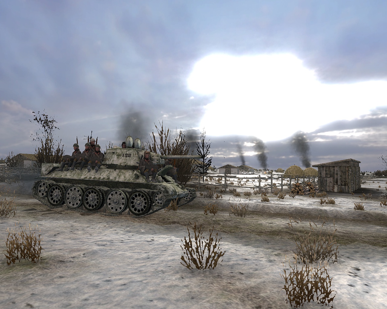 После выхода нового патча я не удержался от маленького отчёта ... Значит ситуация такая - после моей неожиданной для немцев разведки боем в близи села танковым взводом, проклятые фашисты потеряли 12 единиц БТРов и решили пойти в наступление несмотря на значительные потери, скриншоты наступления немцев прилагаются Немецкая атака с фланга - захлебнулась: 1-2 скриншот ... и немцы решили обойти по балке.. где их тоже ждали: 3й скриншот После скоротечного и жаркого боя хлопцы чинят стального друга: 4й скриншот "Пожарная" команда готовится к переброске, к сожалению через 2 км марша их ждёт засада и мнговенная смерть 5й скриншот ЗЫ С выходом нового патча теперь в бою учавствует больше войск , боевые действия стали более напряжённые.