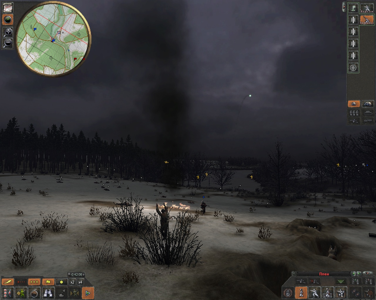 Небольшой очерк об одной из операций, человека разобравшегося в игре. "Применение танков. Т-70 наткнулись на несколько немецких отделений с БТРами, когда я их перебрасывал лесом. В результате 1 танк потерян, один поврежден. Немцы разбежались потеряв БТРы."