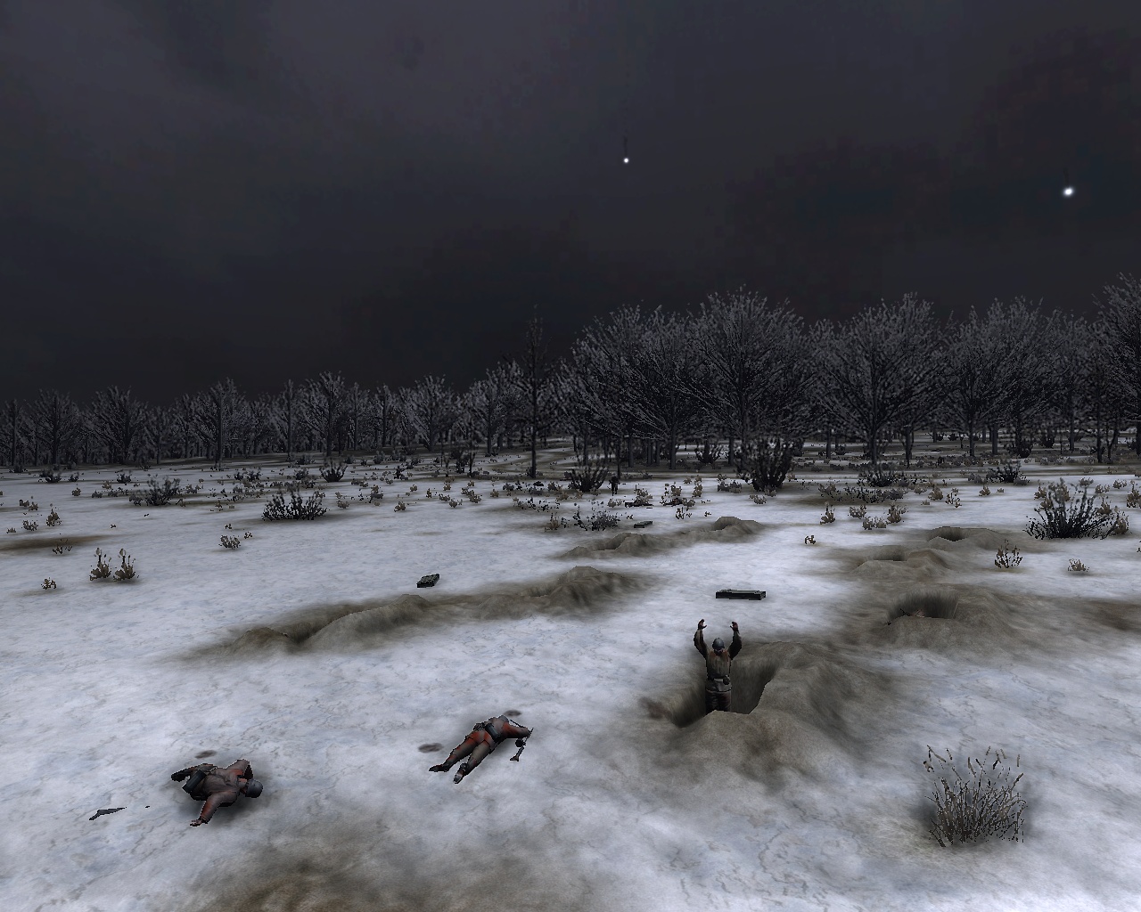 Одно из отделений заняло оборону в воронках оставшихся после артобстрела и долго отбивало атаки противника.