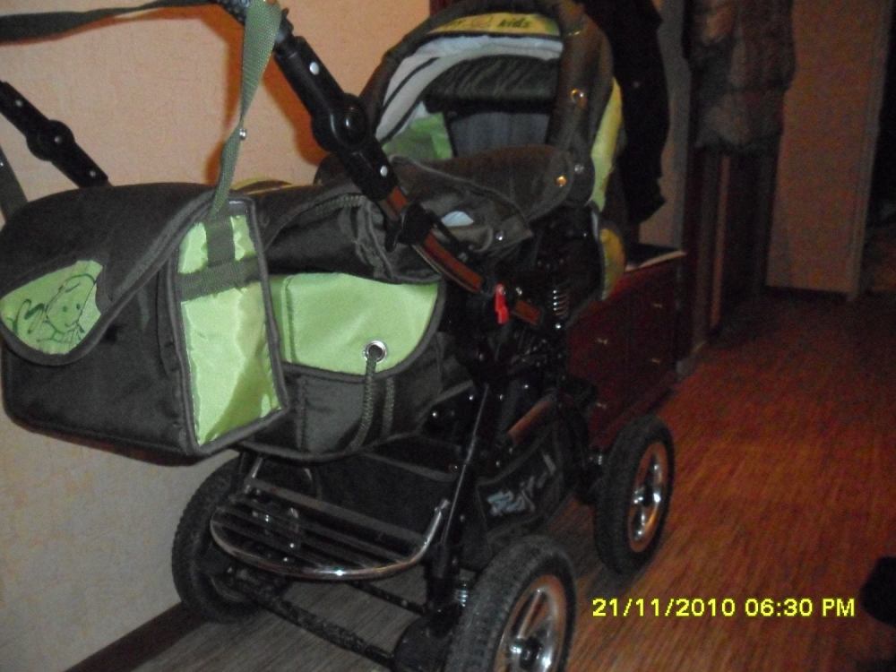 Продается коляска Bajtek Diamant хром. шины. Коляска в практически первоначальном виде, т.к. в эксплотации 2 месяца. Причина продажи - подарили еще одну, более крутую. Вот отзыв о ней: Коляска - трансформер Bajtek Diamant – выгодное решение для практичных родителей Это чудесная коляска-трансформер, покоряющая своей функциональностью и продуманностью. В ней есть все: люлька-переноска для новорожденного, теплый тент, буфер для ножек, съемная ручка для малыша, отличные тормоза на мощных колесах. Эта коляска имеет шесть амортизаторов для улучшения хода. Малыша никогда не побеспокоят неровности дороги. Кроме того, у этих колясок есть большая корзина для вещей, куда Вы можете положить хоть сто лопаток для песка, хоть пять килограмм картошки. Коляска Bajtek будет надежной спутницей Вашего ребенка с рождения и до тех пор, пока он не полюбит пешие прогулки. Ведь её можно использовать и как коляску, разложенную для сна, и трансформировать в прогулочную коляску. Спинка легко поднимается и опускается, имеет несколько углов наклона для большей комфортности, а ремни безопасности обеспечат ровную посадку и надежную фиксацию малыша. Если Вы решите купить коляску Bajtek Diamant, то Вы оцените вместительную сумку для детских принадлежностей, множество карманов для мелочей, дождевик и съемный столик для ребенка в зависимости от модели. Коляска выполнена из 100% хлопчатобумажной ткани с водоотталкивающей пропиткой. От себя добавлю, она имеет ШЕСТЬ амортизаторов, которые делают ее оч комфортной для малыша даже при прохождении больших неровностей. Литые диски, и полноценные подкачивающися колеса. Вот ссылка на нее http://www.chudo-rebenok.ru/catalog/babycarriage/p.php?ID=2506 Цвет на фото. Цена 4500 Писать лучше в ЛС.