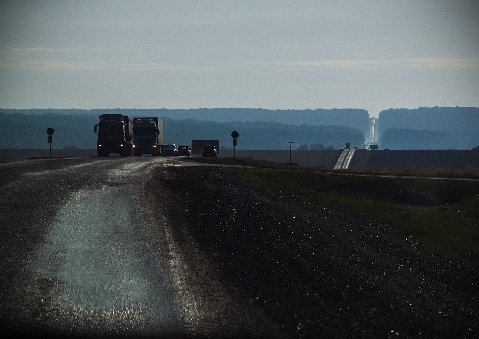 M@x86, надо маршрут № 4 "Юг-Север" как-то обыграть А Сургутский мост мне несколько лет покоя не давал) Фотографировал сын из люка движущейся машины, могла давать только ЦУ, так как за рулём, немного дождь помешал...