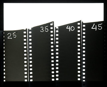 Теперь, рассматривая плёнку напросвет надо найти кадр, на котором серая карта едва заметным почернением начинает появляться на прозрачном фоне. Выглядит это примерно вот так: