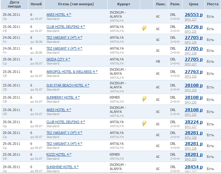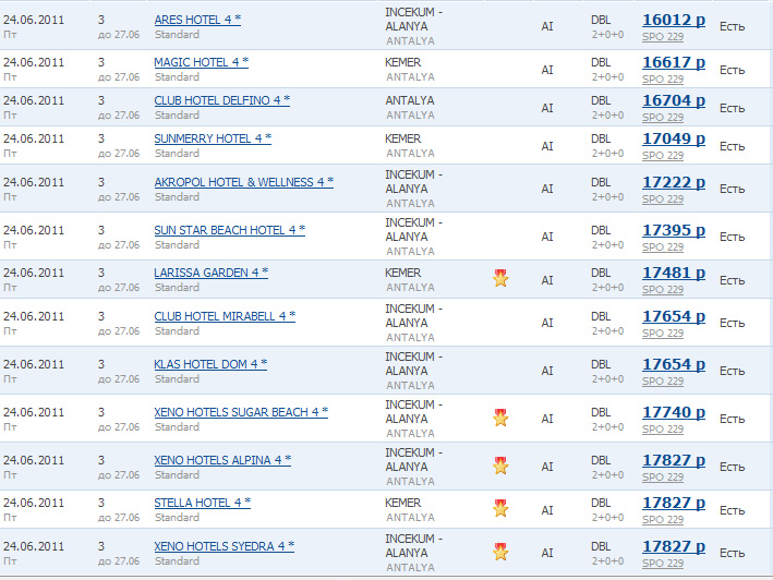 Ну и на туры на 6 ночей с вылетом в период с 21 по 30 июня тоже симпатично: от 19000 за двоих в 3*, от 26000 в 4* и так далее