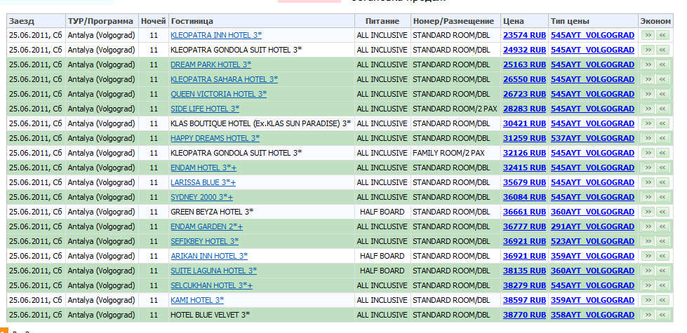 25 июня 2011 у Корала чуточку дешевле даже при том, что ночей 4... 3* от 12300; 4* от 13000; 5* от 16500
