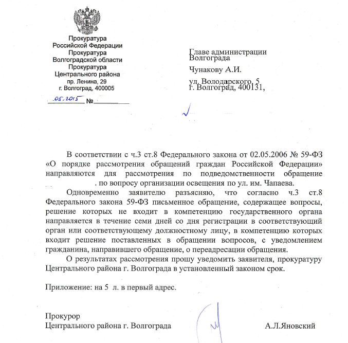 Сегодня пришел ответ из прокуратуры Волгограда. В нем говорится, что направлено исковое заявление в суд к администрации Волгограда
