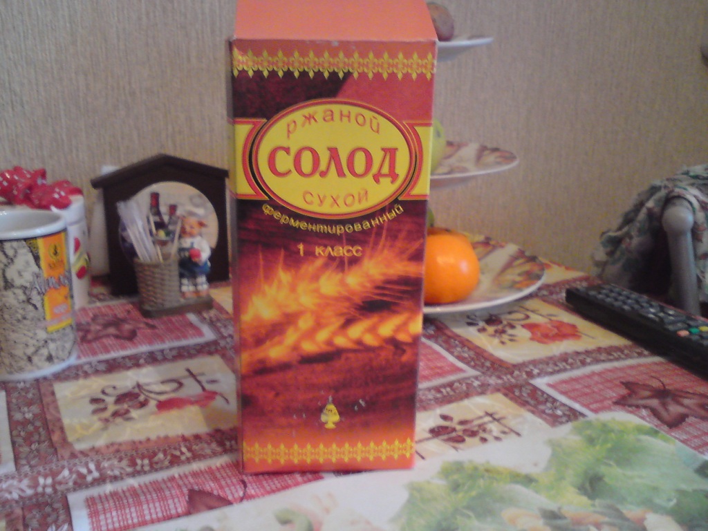 Солод покупал в павильоньчике на ЦР,далее: Закваска-берём 0,8 банку День первый:2 ст.ложки с бооольшим верхом ржаной муки,ст.ложка сахара,100гр.воды(применяю исключительно фильтрованую)Размешиваем и ставим на сутки к батарее. День второй:исчё 2 ст.ложки ржаной муки и 100гр. воды,замешиваем,ждем сутки(должен уже появится запах брожения). День третий: опять 2 ст.л. муки и воды. День четвёртый-ожидания вознаграждаются.Отливаем 1 стакан(200гр.)закваски в форму хлебопечки(в банку опять возмещаем 2ст.ложки муки и 100гр.воды,отставляем часика на 3-4 в тепле и убираем в холодильник.Мы создали ВЕЧНУЮ закваску(восполняемую). В форму к закваске доливаем 300гр.воды,2ст. растительного масла,1ст.ложка сахара,чайная ложка (с верхом)ссоли,1ст.ложка ячменного солода-лучше рамешать предварительно в воде. Мука-14ст.ложек с большим верхом высшего сорта,и 4 ст.ложки ржаной. Закружаем в хлебопечку,и готовим тесто,у меня на Мулинекс-6й режим(1,3 часа). Внимаем форму и ставим в тёплое место,процесс длительный, у меня подъём теста происходит за 4-5часов(как тесто поднимется до верха формы),но все наши усилия будут вонаграждены! Выпекаю 1-час,"тёмная корочка".Выход 1050гр. великолепного хлеба,закваска пополняется по мере надобности(раз в два дня)