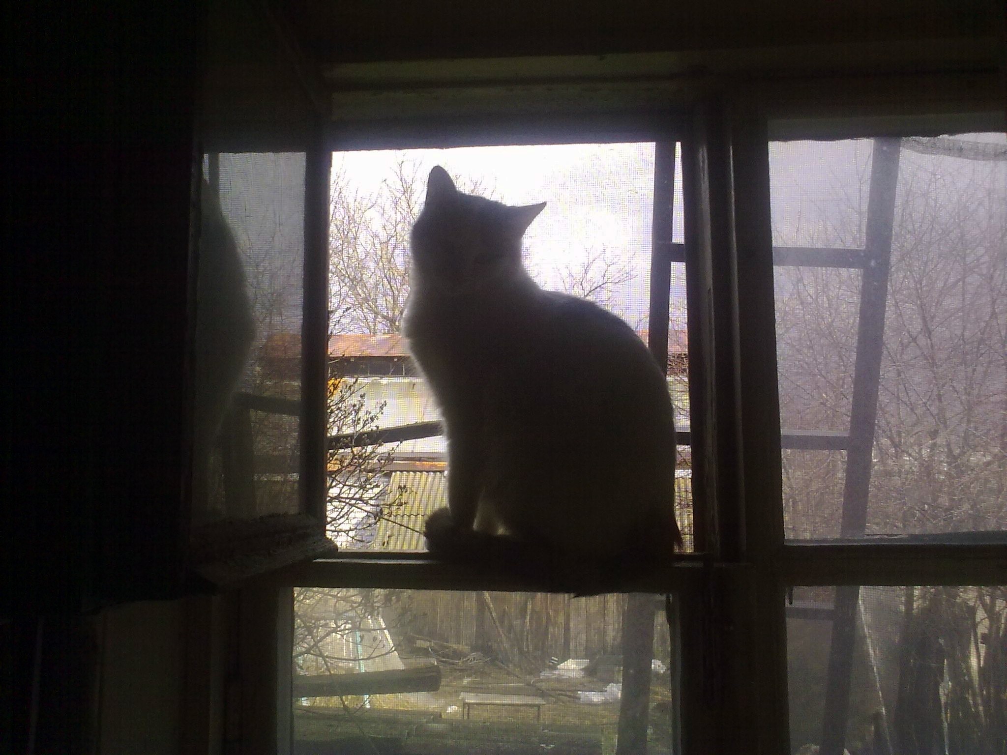 Кстати о форточках. Коту моему не разрешается выражать мнение голосом. Если кто читал мои опусы в этой теме, тот знает, что кот Тормоз подает мне голос только шепотом. Полузадушенным таким "мххя..." Кот родился и вырос в моем доме, и я для него некий Суперкот. Он ходит предо мною, прижимая уши. Не, ну он, конечно, пробует мявкать иногда чуток погромче - кто бы сомневался! - и я приветствую это! Мушшына растет! Боец! Лови тапок! А вот клянчить, дело бесперспективное, в чем кот регулярно убеждается. Таки я о форточках. Лежу, значить, никого не трогаю, читаю интернеты. Приходит кот. Говорит шепотом "мя..." А я-то знаю, что корм насыпан, и вода налита. За выклянчивание корма - люлей сразу, за сообщение о пустой поилке - поощрение и всяческое поглаживание, и пузико помять, как он любит. Но есть еще момент - я вроде писал выше - когда кошка пришла с улицы, тихо сидит под дверью, я не чую, кот чует. И зовет меня открыть дверь. Это тоже хвалю и пузико почесать не влом. Но тут оказалось ни то и ни это. И я спросил кота: "ЧОНАДА?!!!111" (типа скажи спасибо, что тапком не зае...) "Тебе что, впадлу уже через форточку шляться, а?!" Оказалось - в раскрытой форточке сидит Хряпундия. Закупорила проход, паразитка. См. фото выше. А кот - сами понимаете, не мог же он ее оттуда выгнать. Вот и пришел ко мне жаловаться. Мол, приспичило мне, и знаю я, как правильно, однако проблема, хозяин!