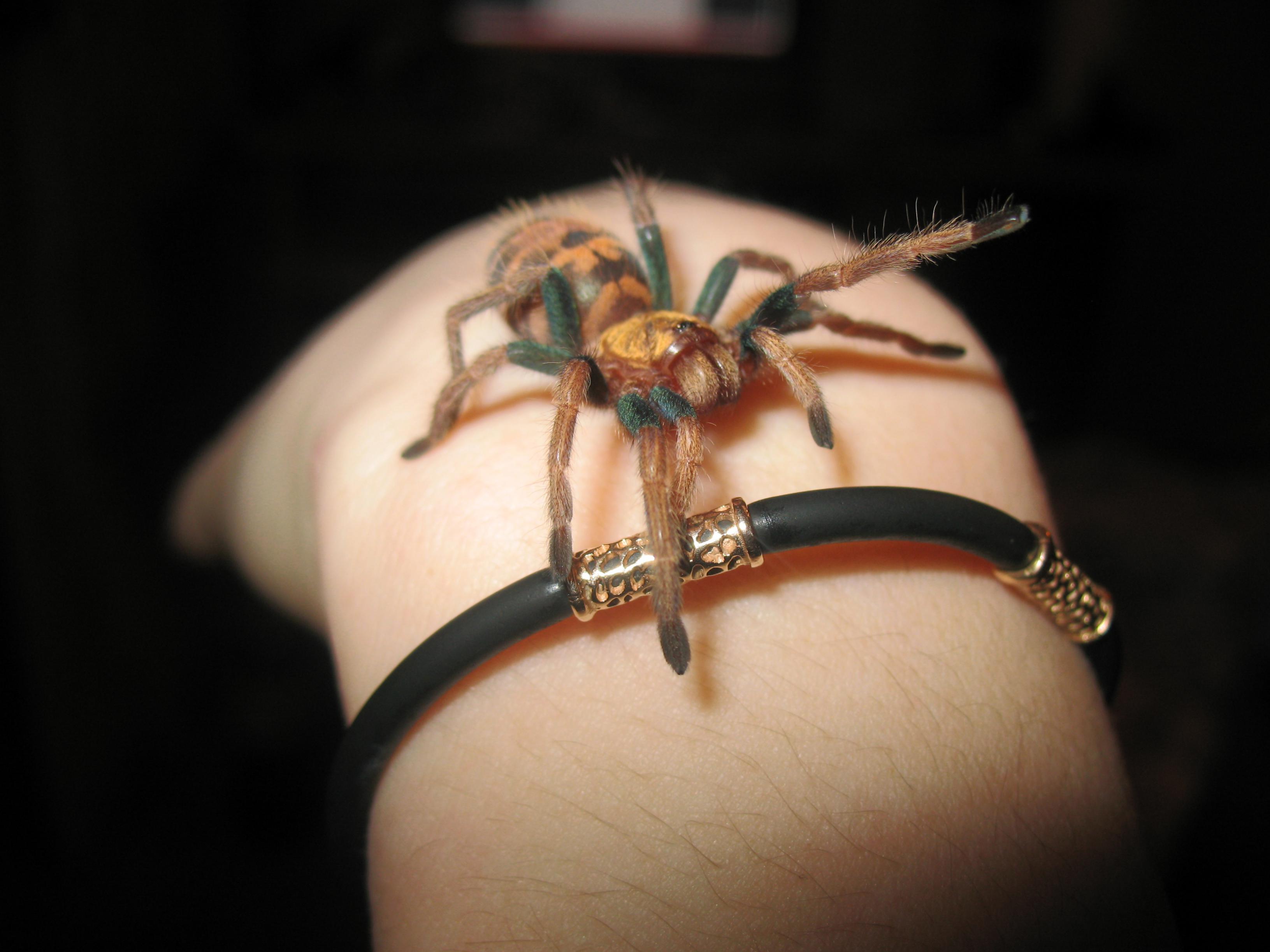 У меня два паука и куча тараканов A1R, не много вас поправлю. Продолжительность жизни зависит ещё и от вида. В среднем самцы живут 2-3 года, самочки значительно дольше. А вообще брать паучка лучше детёнком Так и дешевле и интересней Правда есть риск попасть на самца, Л1-Л5 редко продают определёнными ---------- Сообщение добавлено 07.05.2011 02:07 ---------- Вы не определяли пол? Я так поняла у тебя Brachypelma Boehmei, вид достаточно спокойный. Кусается крайне редко, да и не шибко ядовит, если нет аллергии можно попробовать ---------- Сообщение добавлено 07.05.2011 02:12 ---------- это Brachypelma auratum, ну это так. А вообще красота. Можно попробовать и потомство получить