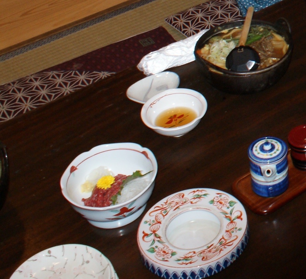 А че там, во- Коняшка в тарелке с желтым цветочком кстати, зачетное блюдо суп в большой тарелке, называется тофу из Кофу (город) не обычный скп и вкусный.
