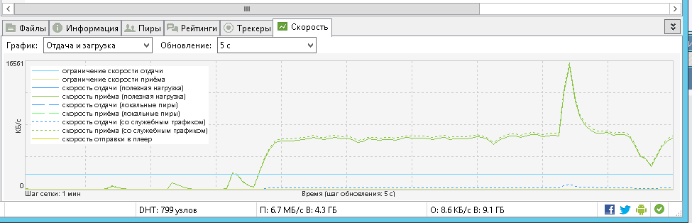 Этот дает. Что я только что и проверил у себя. 6,0-6,6 на торренте. Откуда всплеск до 15 не понял. Хотя я по гигабиту подключен.