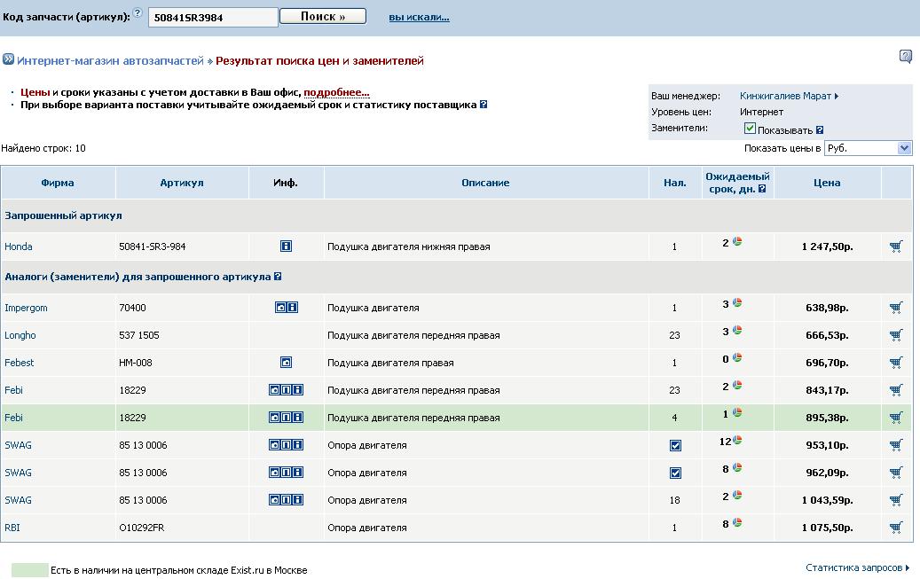 Вбиваю на экзисте part number детали, мне выводится список, в котором указаны: