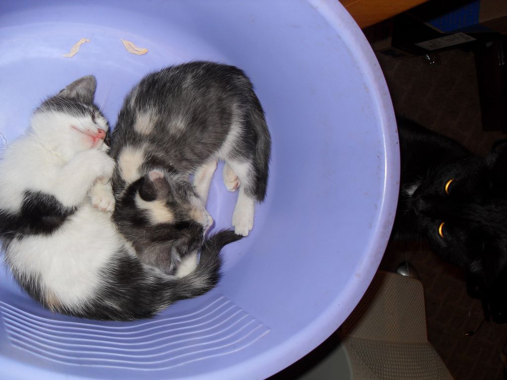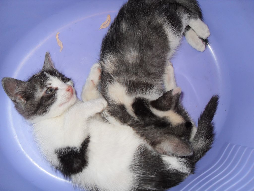 В подъезде обнаружили 2 котят. Беспородные. Чистые, без блох и прочей фигни. Спят сегодня у нас. Им примерно 25 дней. Жрут все и много. Очень умные - когда показали им, где гадить - сразу начали гадить туда. Мой кот учился этому год(зато он очень добрый ). Итог: отдаю двух умных котят, желательно очень срочно.