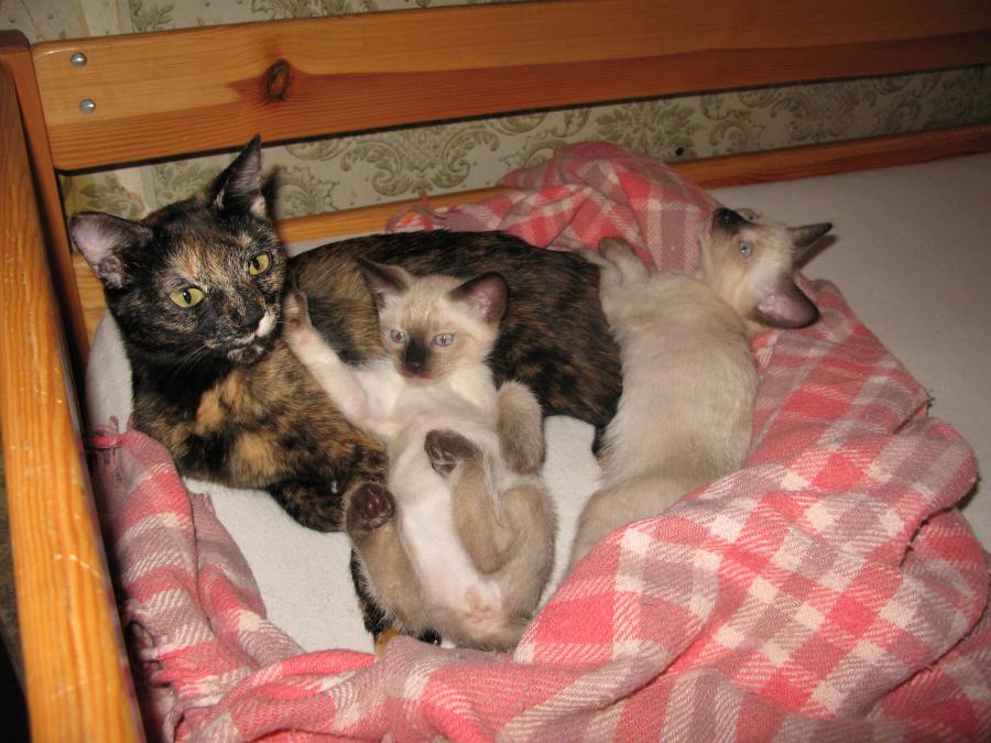 Наташа, конечно котяток мы не бросим ни при каких обстоятельствах. Их мамашку с папашкой мы приютили тоже примерно в таком-же возрасте, хотя у нас уже был взрослый кошара. Стерилизовать животных не хочется, а более простые способы контрацепции не подействовали, вот и славные кошарики-кошмарики теперь у нас живут! Умненькие-благоразумненькие. К еде неприхотливы, к туалету приучены.